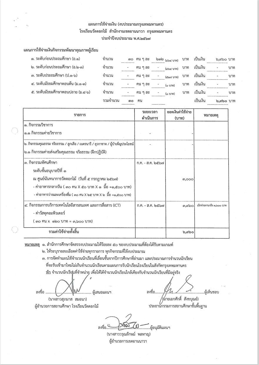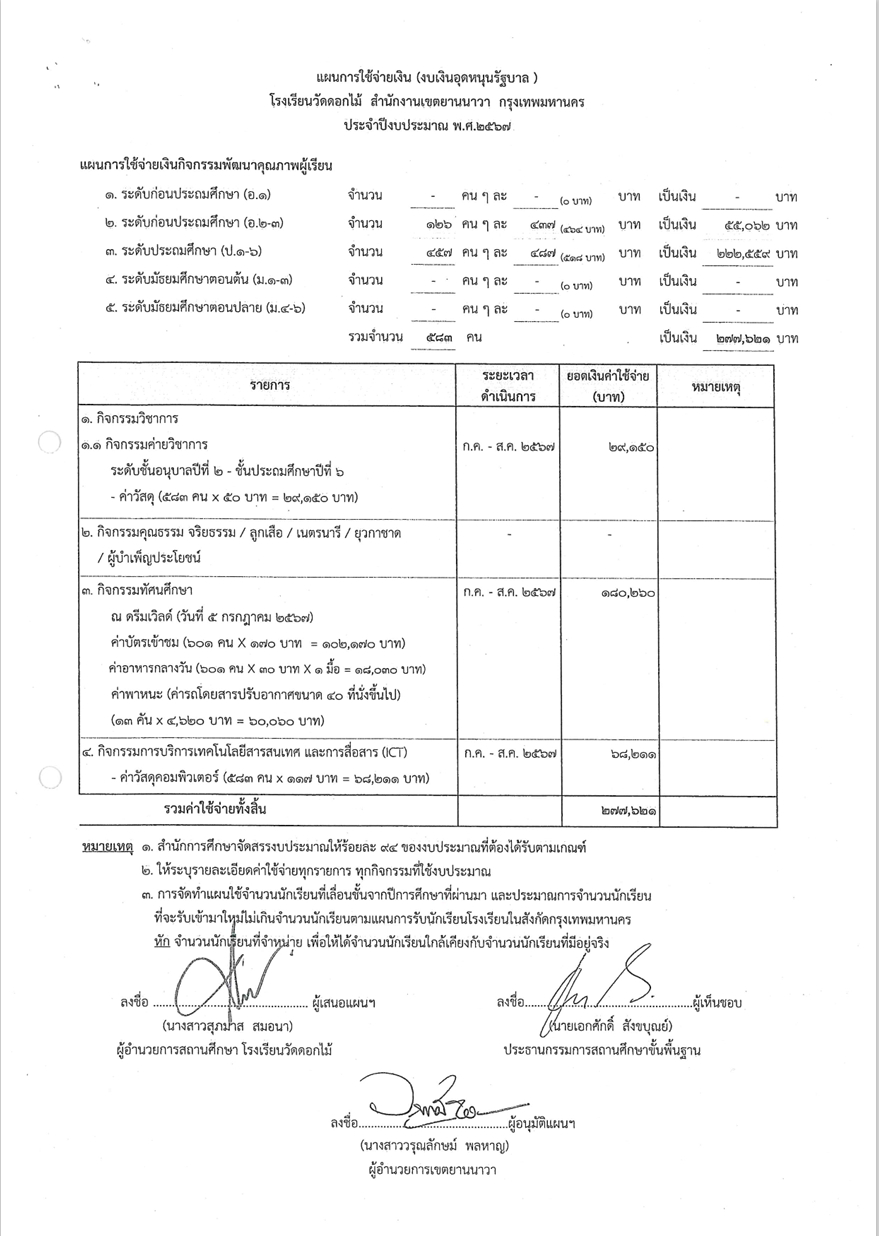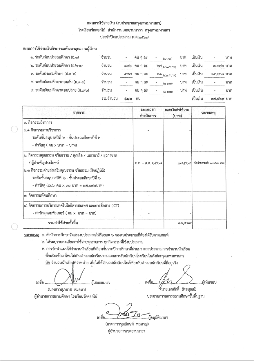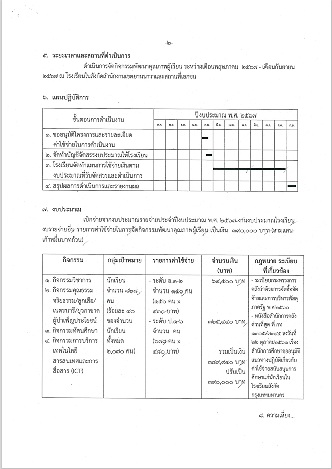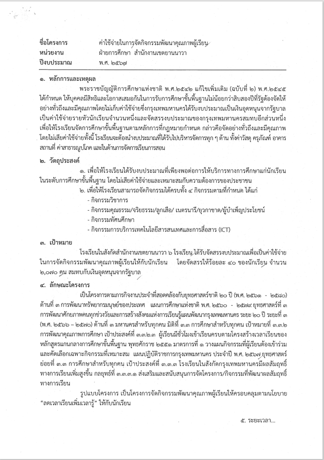 ข้อมูลโครงการ :: ค่าใช้จ่ายในการจัดกิจกรรมพัฒนาคุณภาพผู้เรียน