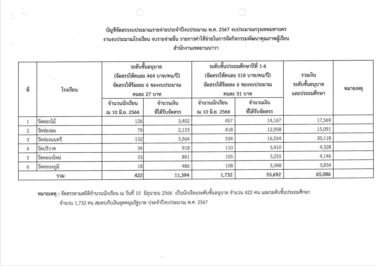 -ค่าใช้จ่ายในการจัดกิจกรรมพัฒนาคุณภาพผู้เรียน390,000.00100.00สำนักงานเขตยานนาวาฝ่ายการศึกษา