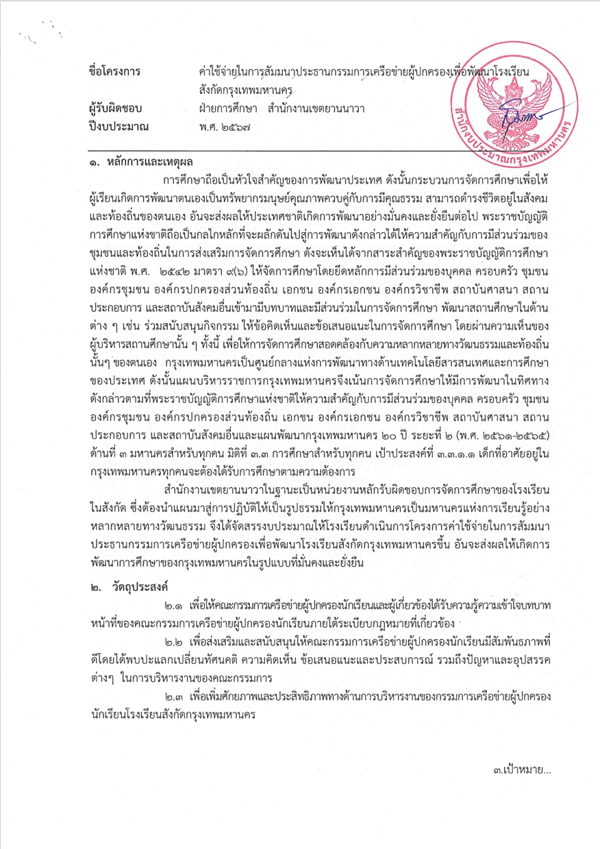 ข้อมูลโครงการ :: ค่าใช้จ่ายในการสัมมนาประธานกรรมการเครือข่ายผู้ปกครองเพื่อพัฒนาโรงเรียนสังกัดกรุงเทพมหานคร
