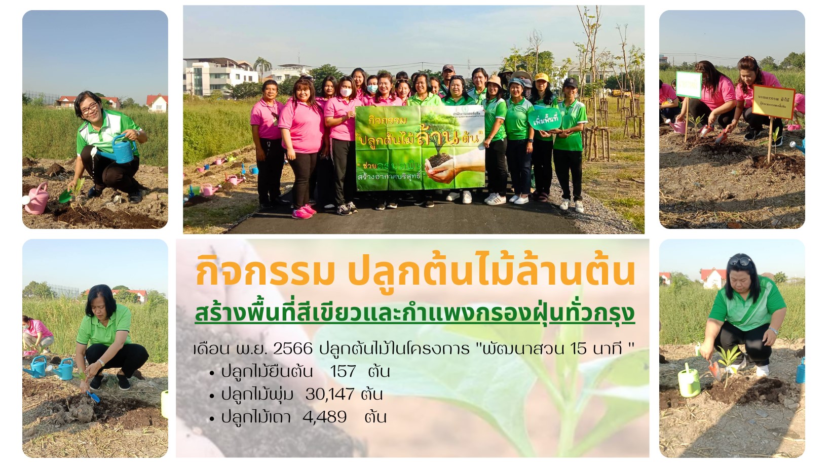 ![]() | 25-12-2023 | 150.00 | ดำเนินการปลูกต้นไม้ยืนต้น รวม 150 ต้น บริเวณสวนน้ำตลิ่งชันถนนพุทธมณฑลสาย 1 โดยเป็นไม้ยืนยัน 150 ต้น | ||