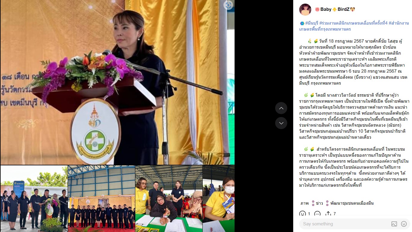 27-07-20245.00- อยู่ระหว่างเตรียมการประชุมคณะกรรมการศูนย์ถ่ายทอดฯ - เบิกจ่ายค่าตอบแทนการประชุมคณะกรรมการศูนย์ถ่ายทอดฯ เรียบร้อยแล้ว - วันที่ 18 ก.ค. 67 เข้าร่วมงานคลินิกเกษตรเคลื่อนที่ในพระราชานุเคราะห์ฯ เฉลิมพระเกียรติพระบาทสมเด็จพระเจ้าอยู่หัวเนื่องในโอกาสพระราชพิธีมหามงคลเฉลิมพระชนมพรรษา 6 รอบ 28 กรกฎาคม 2567 ณ ศูนย์เรียนรู้นวัตกรรมเพื่อสังคม (บึงขวาง) แขวงแสนแสบ เขตมีนบุรี กรุงเทพมหานคร
