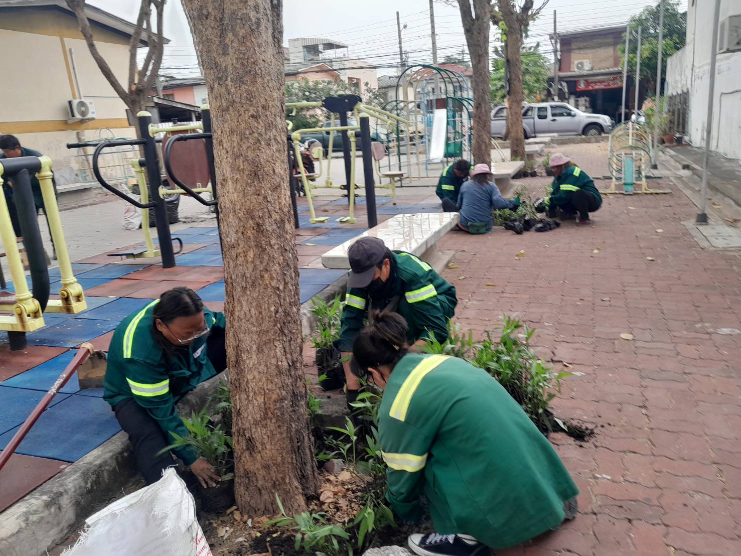 26-03-20241.00พื้นที่สวนกลางชุมชนเหะเรือนแถวดำเนินการเรียบร้อยแล้ว - ปลูกต้นฟ้าประทานพรใต้ต้นประดู่ จำนวน 500 ต้น - ปลูกและตั้งประดับต้นไม้บริเวณป้ายสวน 15 นาที พื้นทีส่วนกลางชุมชนประชาร่วมใจ2 - ดำเนินการปรับพื้นที่ (เก็บเศษขยะ เศษหิน และกำจัดวัชพืช) - ดำเนินการปลูกไม้ยืนต้น 8 ต้น ได้แก่ ชงโค 4 ต้น, จำปา 2 ต้น และพิกุล 2 ต้น