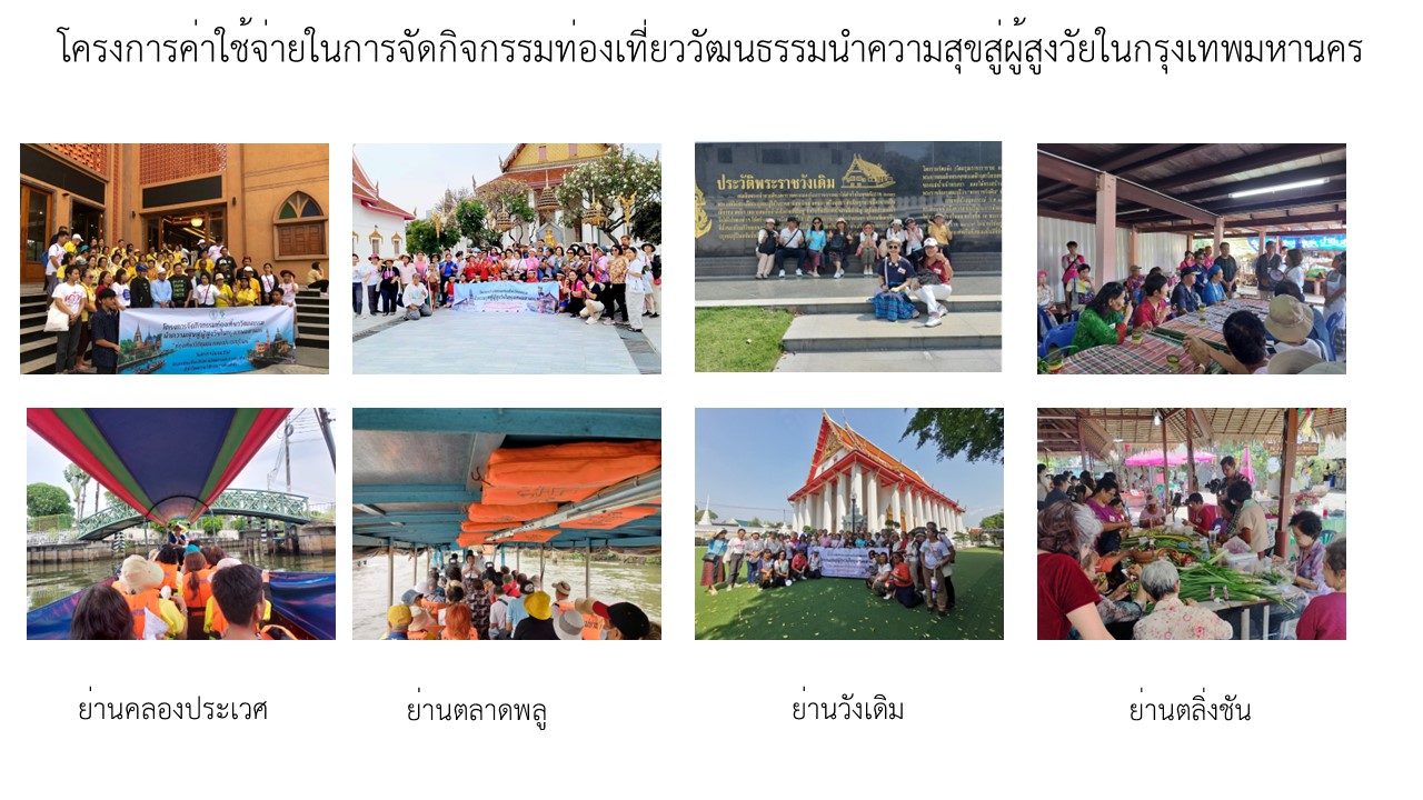 รายละเอียดโครงการ : โครงการจัดกิจกรรมท่องเที่ยววัฒนธรรมนำความสุขสู่ผู้สูงวัยในกรุงเทพมหานคร (ID: 3802)