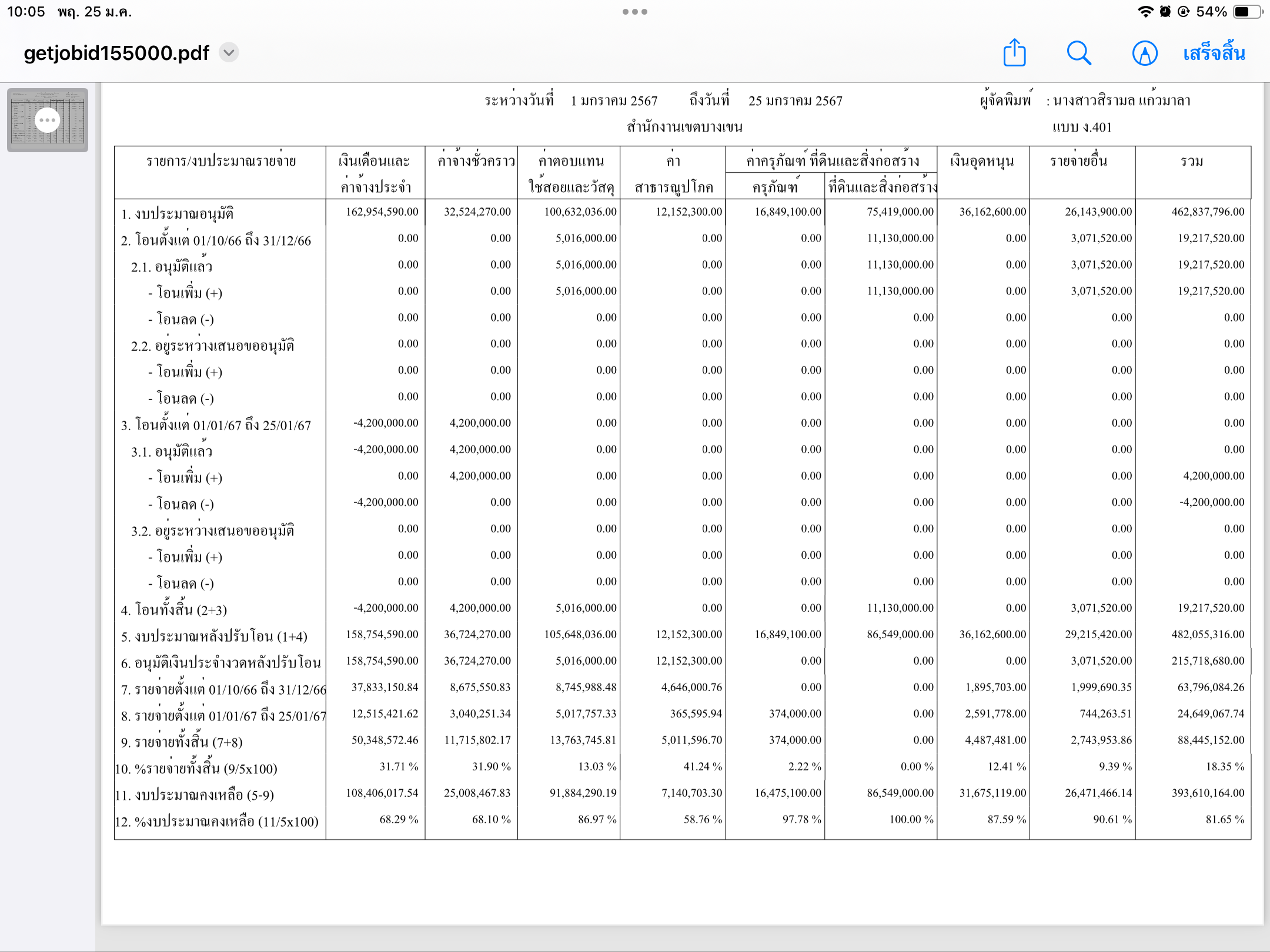 5 | ติดตามการเบิกจ่ายงบประมาณ ประจำเดือนมกราคม 2567 | 10.00 | 01-10-2323 | 30-09-2424 |