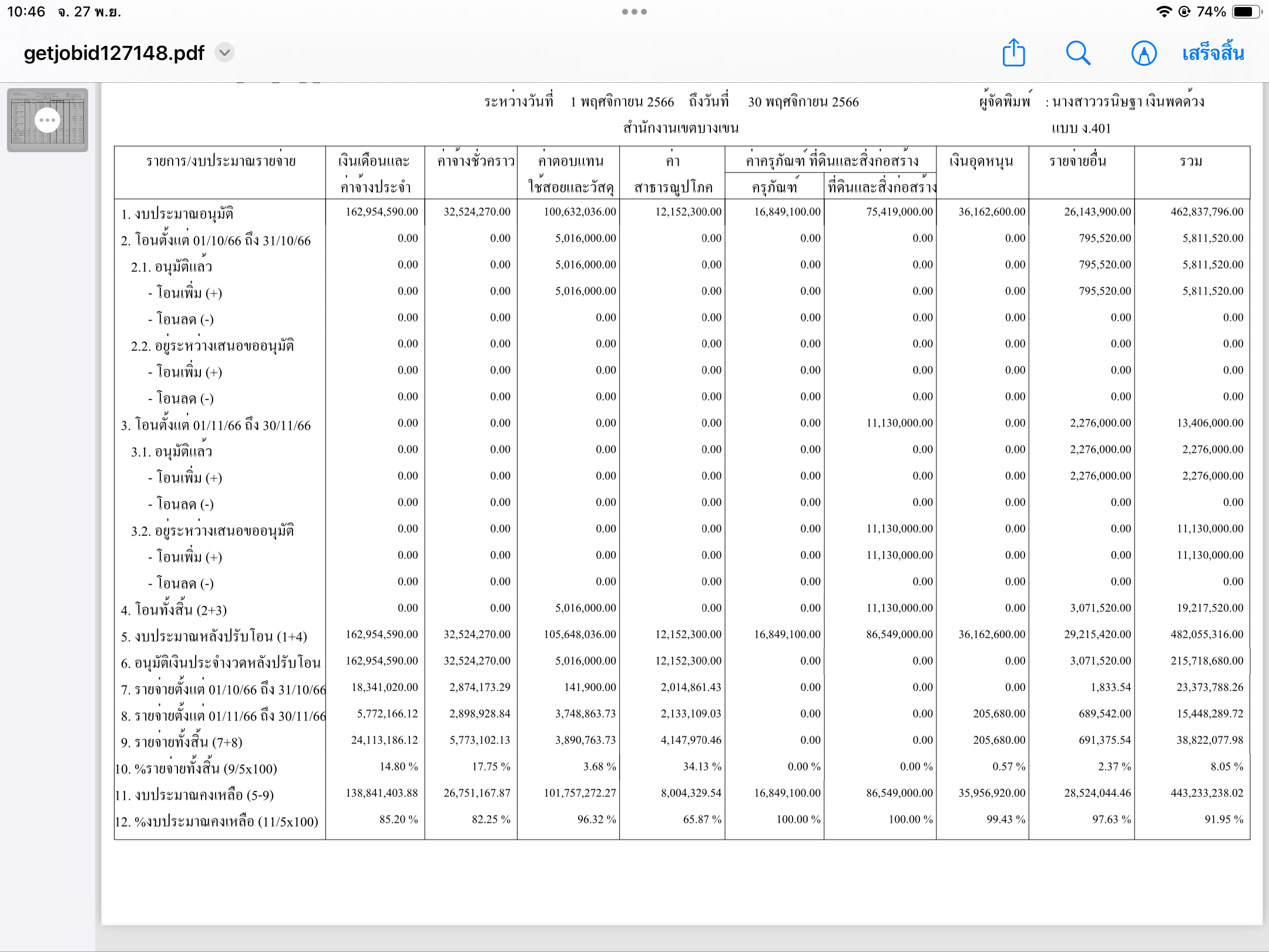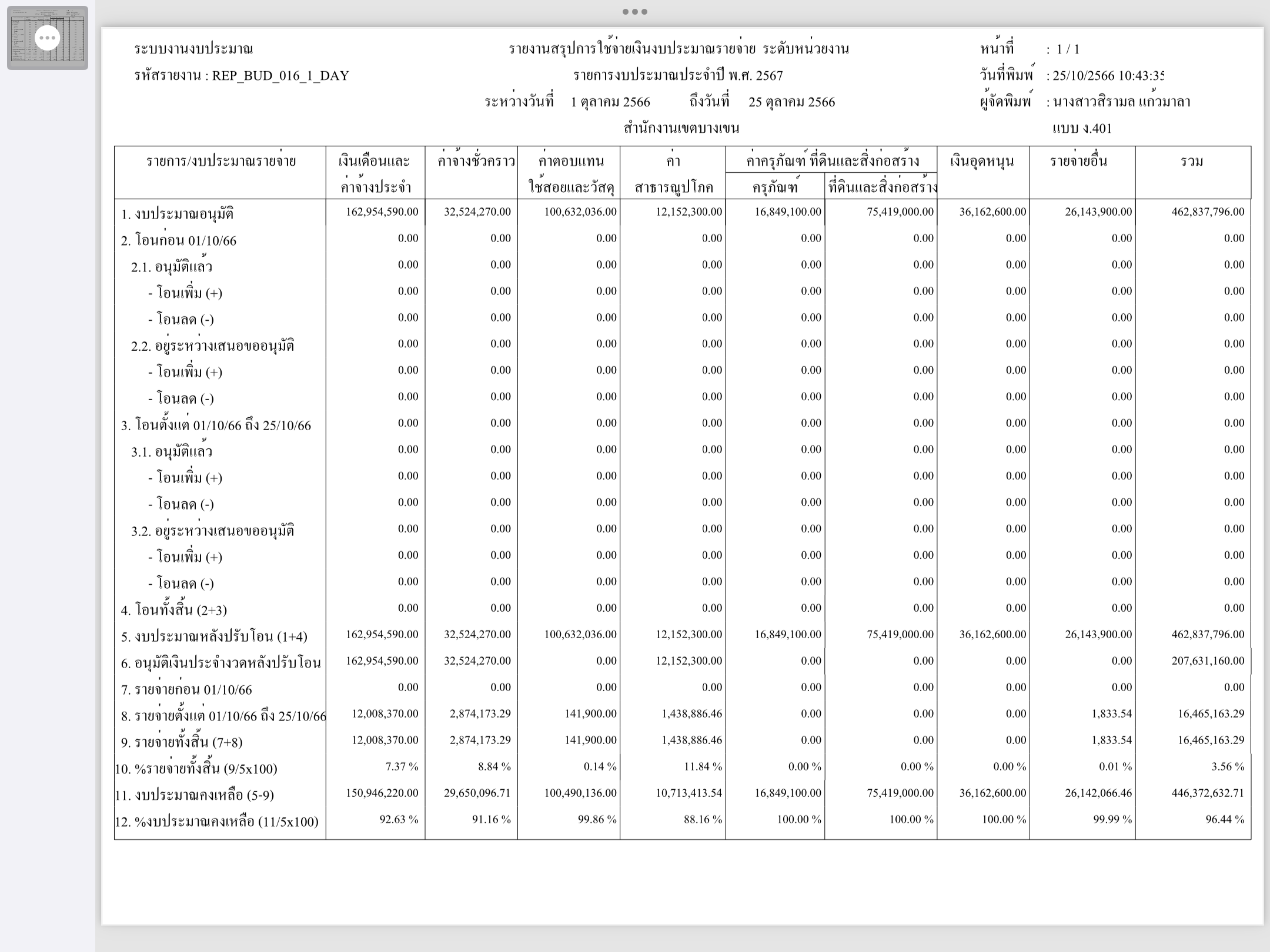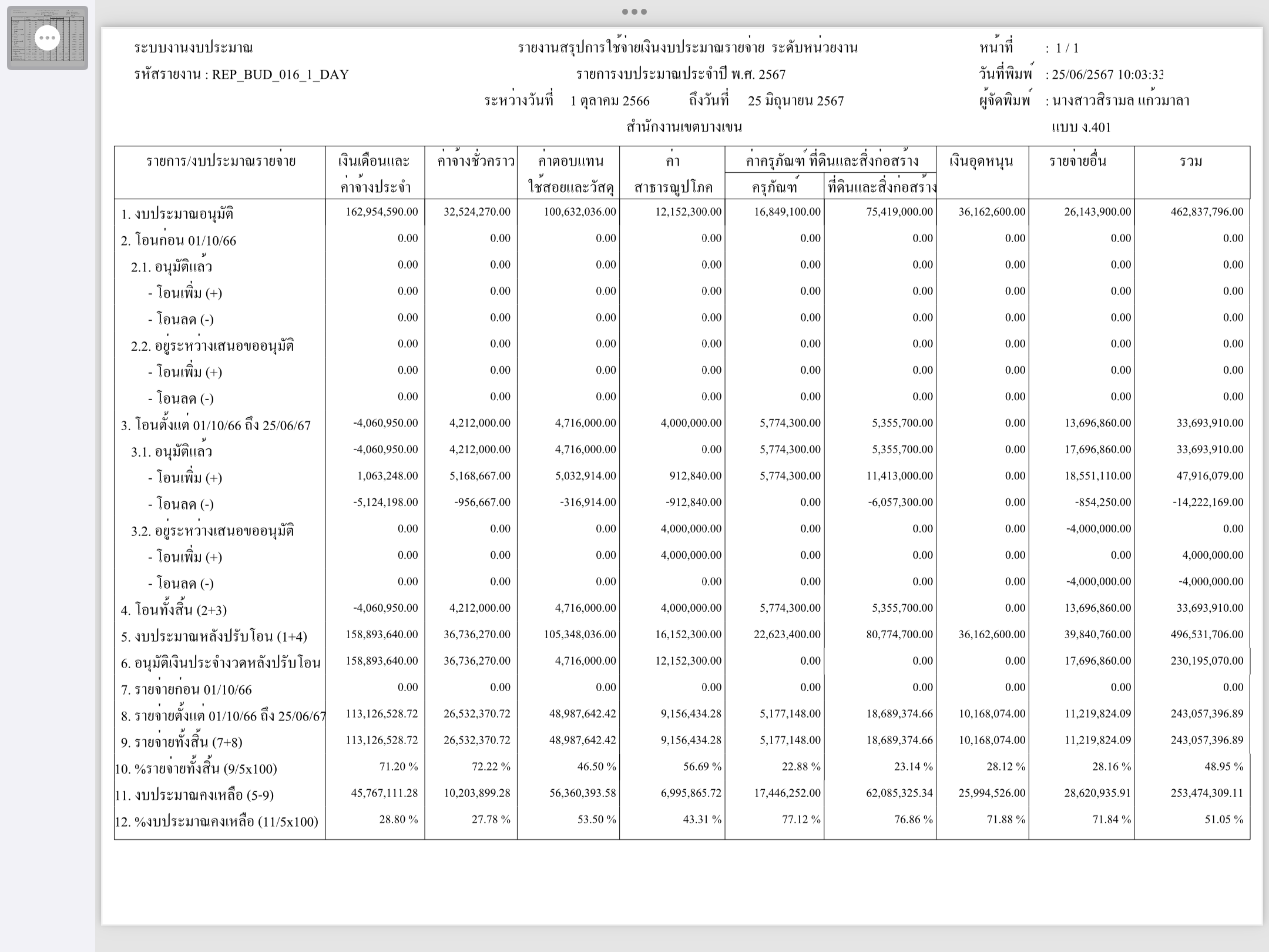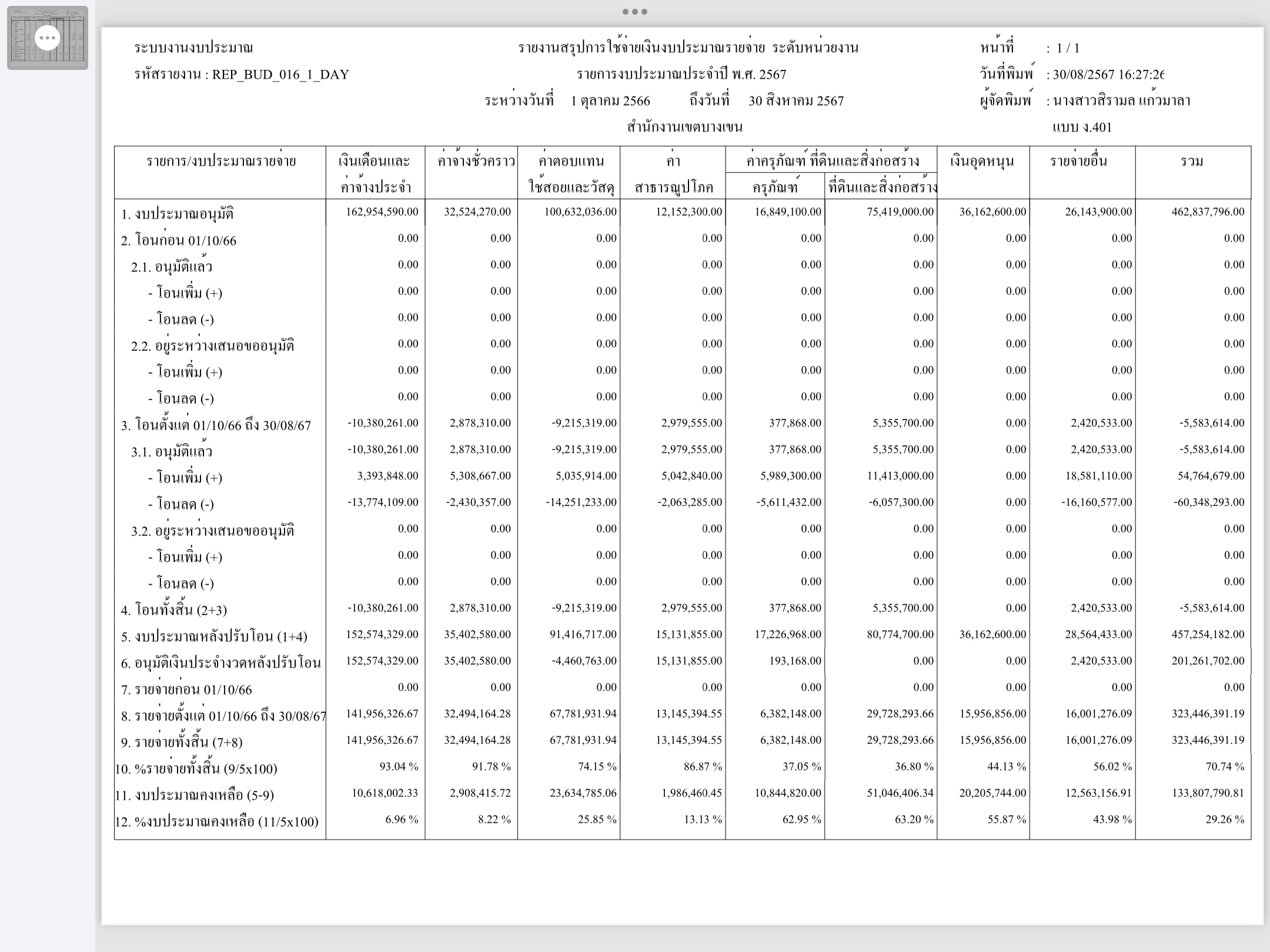 2 | ติดตามการเบิกจ่ายงบประมาณ ประจำเดือนพฤศจิกายน 2566 | 8.00 | 01-10-2023 | 30-09-2024 |