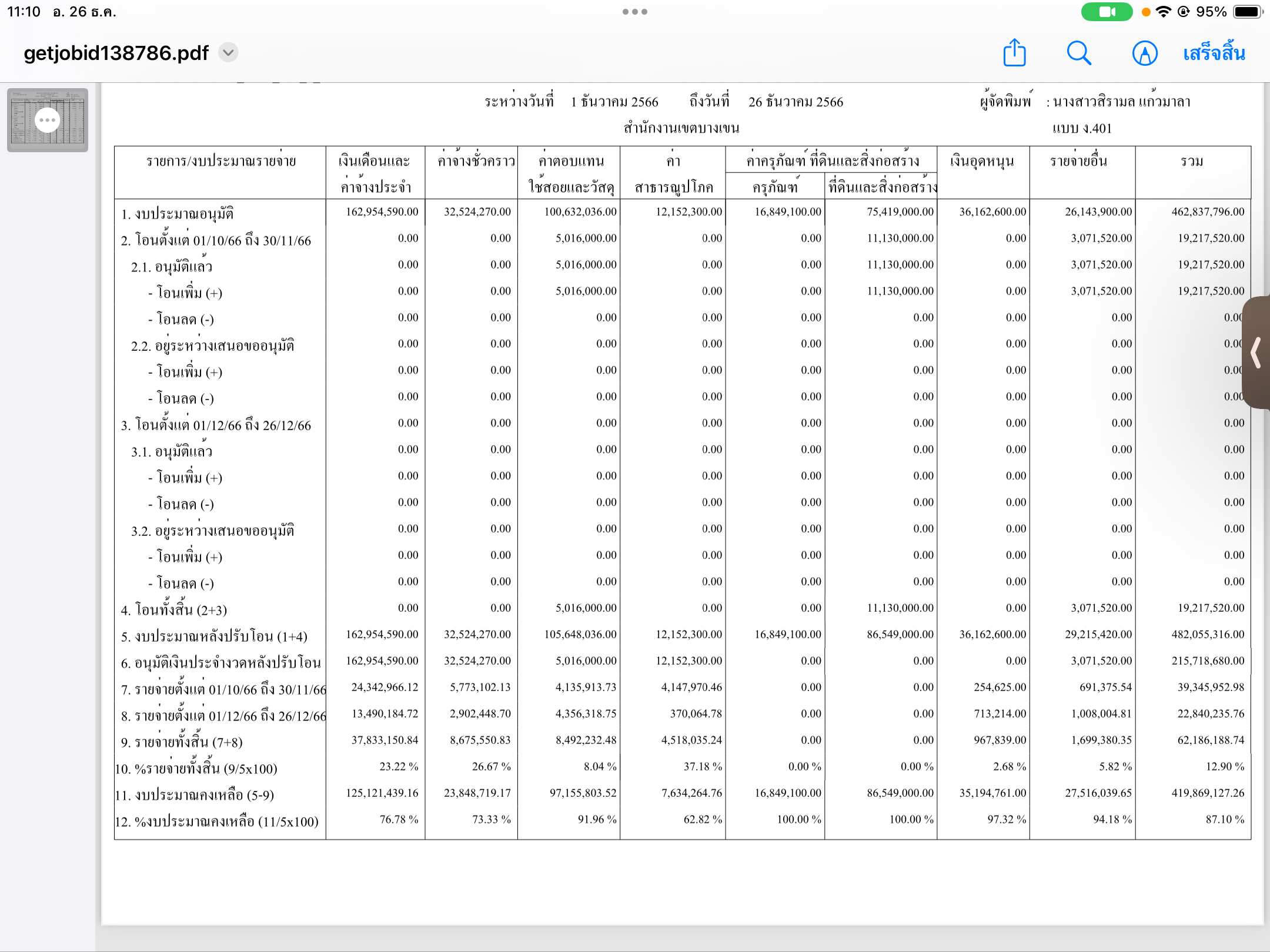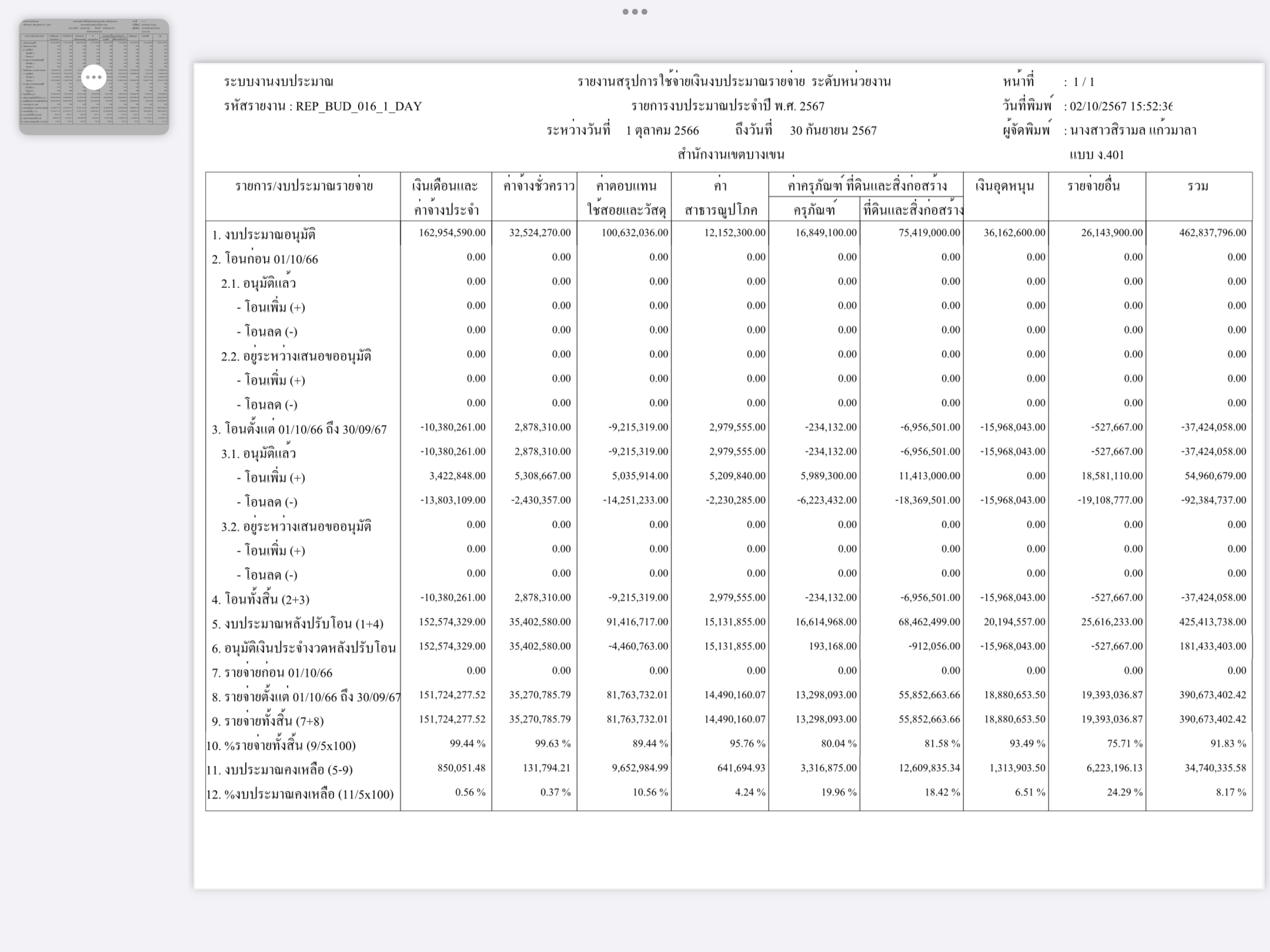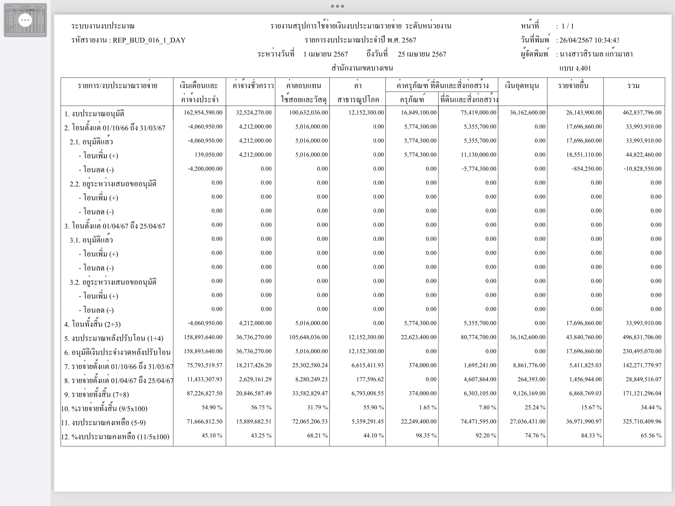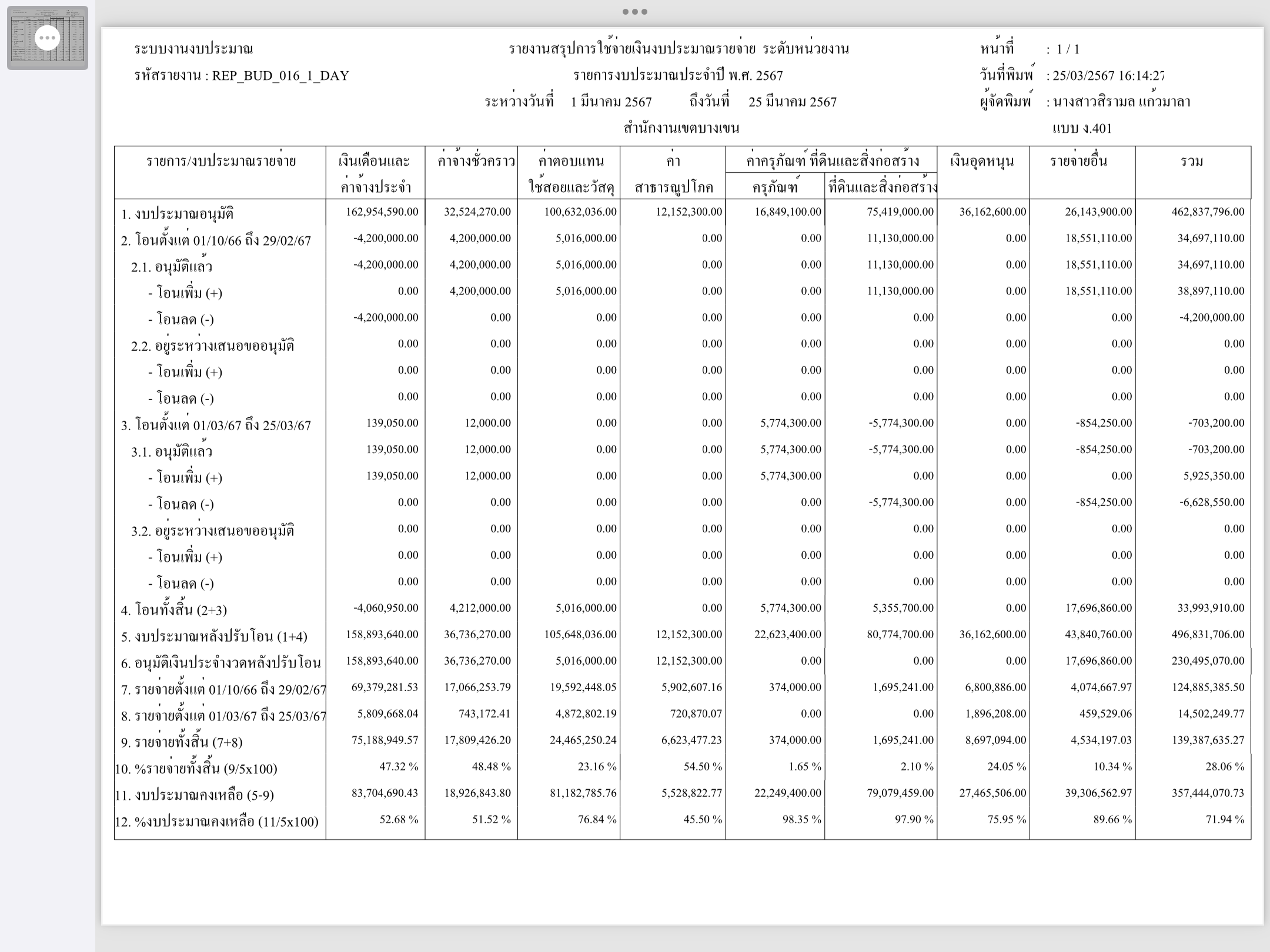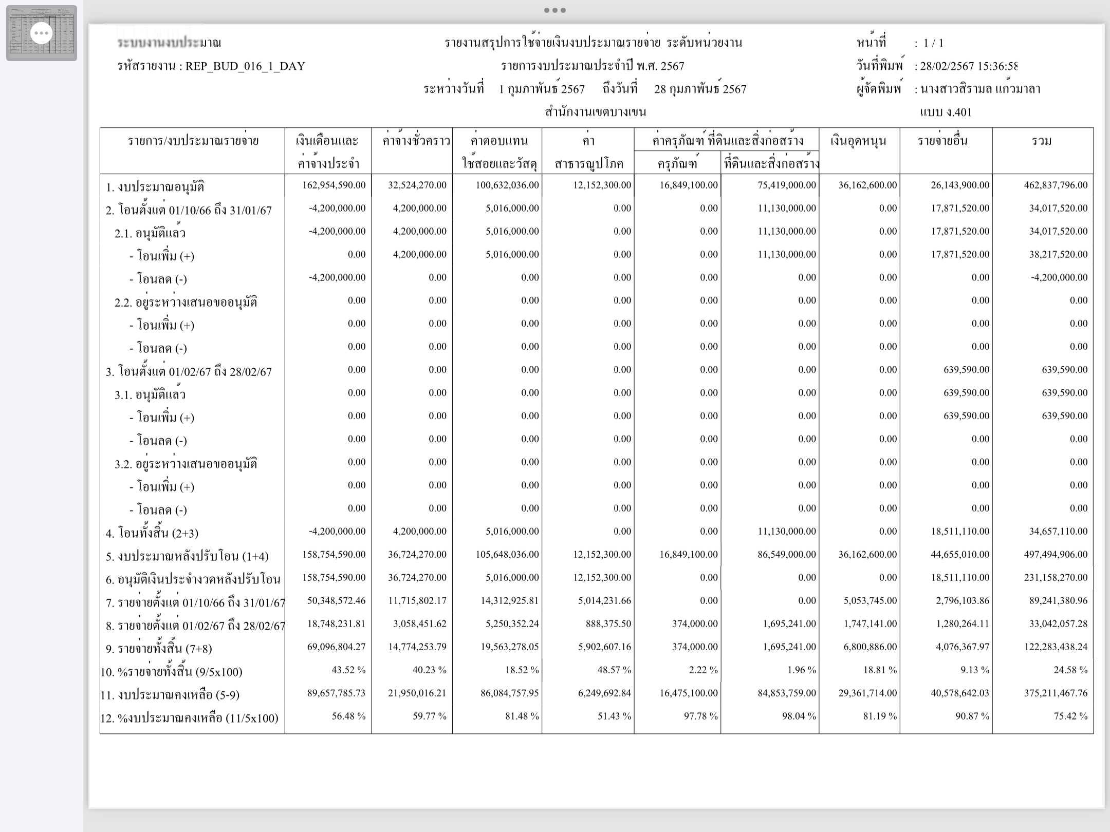 2 | ติดตามการเบิกจ่ายงบประมาณ ประจำเดือนพฤศจิกายน 2566 | 8.00 | 01-10-2023 | 30-09-2024 |