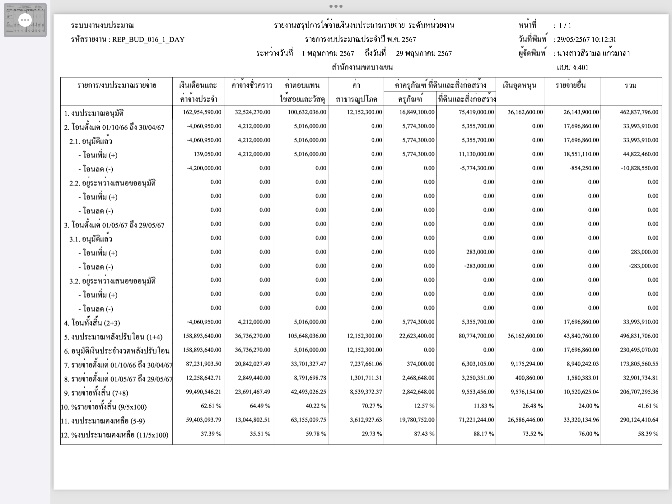 9 | ติดตามการเบิกจ่ายงบประมาณ ประจำเดือนพฤษภาคม 2567 | 10.00 | 01-06-2424 | 30-09-2424 |