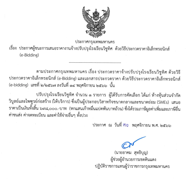 | 7 | รายงานผลการพิจารณา/อนุมัติซื้อหรือจ้าง | 10.00 | 11-12-2023 | 25-12-2023 |