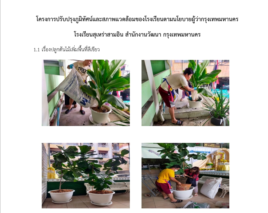 07-03-20241.00โรงเรียนสุเหร่าสามอิน ดำเนินการดังนี้ 1. ปลูกต้นไม้เพิ่มพื้นที่สีเขียวปลูกต้นไม้ระเบียงอาคารเรียนเพื่อช่วยฟอกอากาศและเพิ่มออกซิเจน เพิ่มพื้นที่สีเขียวในพื้นที่โรงเรียน 2. ทำความสะอาดพื้นหน้าโรงเรียน พนักงานสถานที่ขัดล้างพื้นที่หน้าและกำแพงโรงเรียนเพื่อควา