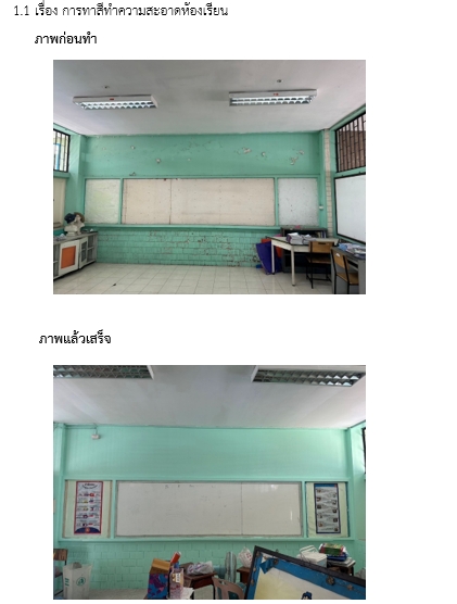 26-01-20241.00โรงเรียนวัดภาษี สำนักงานเขตวัฒนา ได้ดำเนินการดังนี้ ลานอเนกประสงค์ 1. ทาสีเก้าอี้ไม้ 2. ทาสีที่นั่งรอบลานอเนกประสงค์ 3. ติดตั้งฝาผนัง และซ่อมแซมพื้นอ่างล้างมือ 4.ทาสีพื้นที่กร่อน 5.ปรับจุด Check in และ 6.ทาสีท่อระบายน้ำติดตั้งฝาผนัง