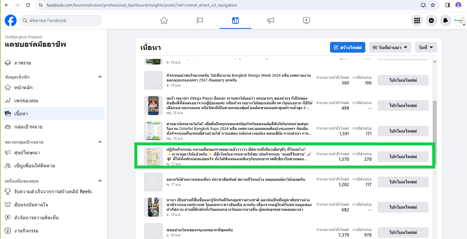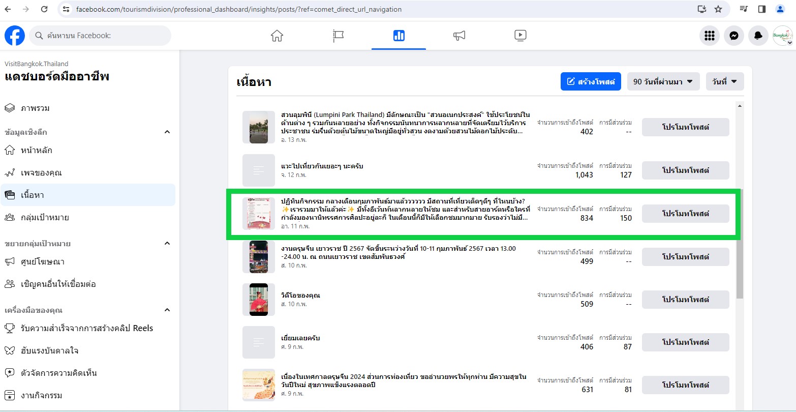 ![]() | - | KPI 6.2.3.2 : จำนวนผู้เข้าถึงข้อมูลข่าวสารด้านการท่องเที่ยวของกรุงเทพมหานครผ่านสื่อสังคมออนไลน์ของกรุงเทพมหานคร (สะสม) (ราย) | ราย | 10,000.00 | 23,726.00 | 237.26 |
