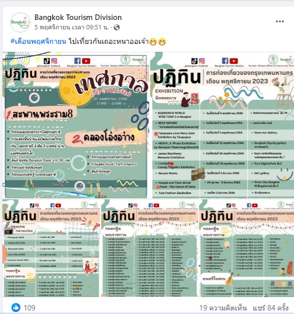 ![]() | กิจกรรมประชาสัมพันธ์ปฏิทินการท่องเที่ยวของกรุงเทพมหานคร | 0.00 | 100.00 | สำนักวัฒนธรรม กีฬาและการท่องเที่ยว | กลุ่มงานแผนงานและประเมินผล |