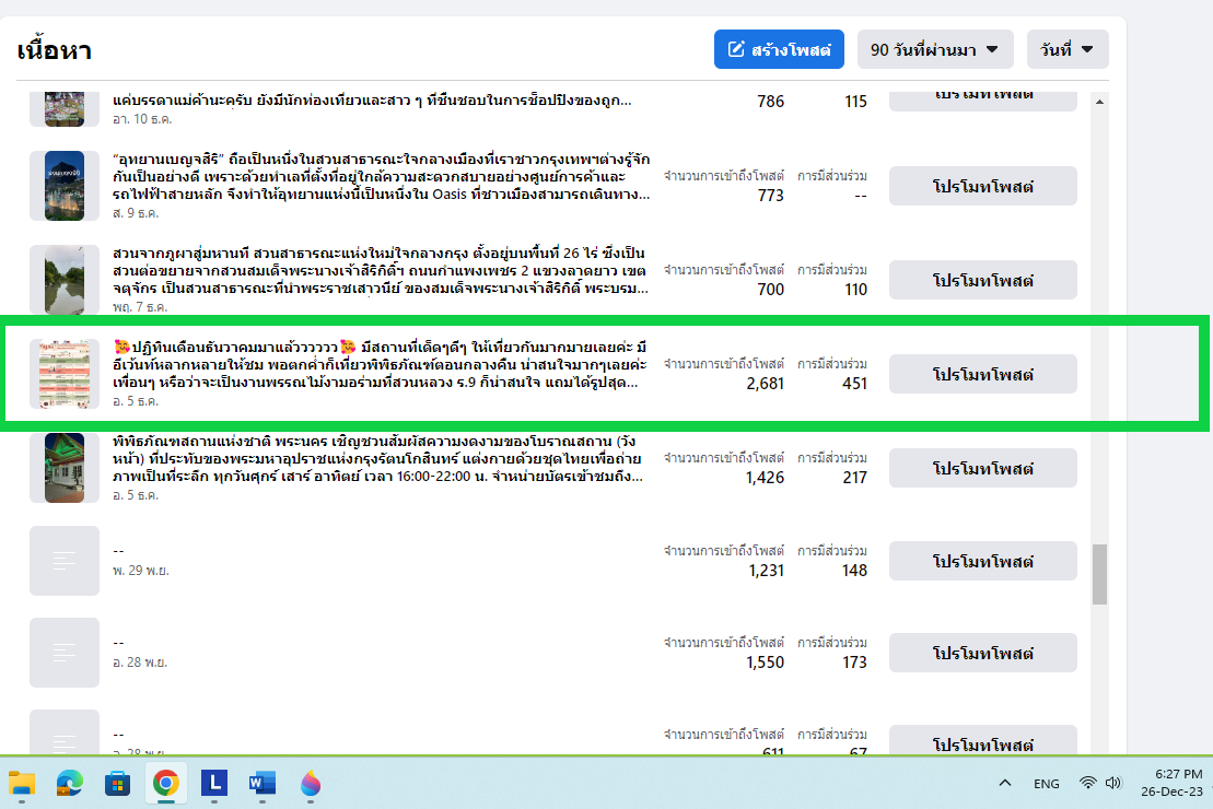 3 | พิจารณาคัดเลือกข้อมูลกิจกรรมด้านการท่องเที่ยวต่าง ๆ เพื่อนำมาเผยแพร่ | 15.00 | 18-12-2023 | 29-12-2023 |