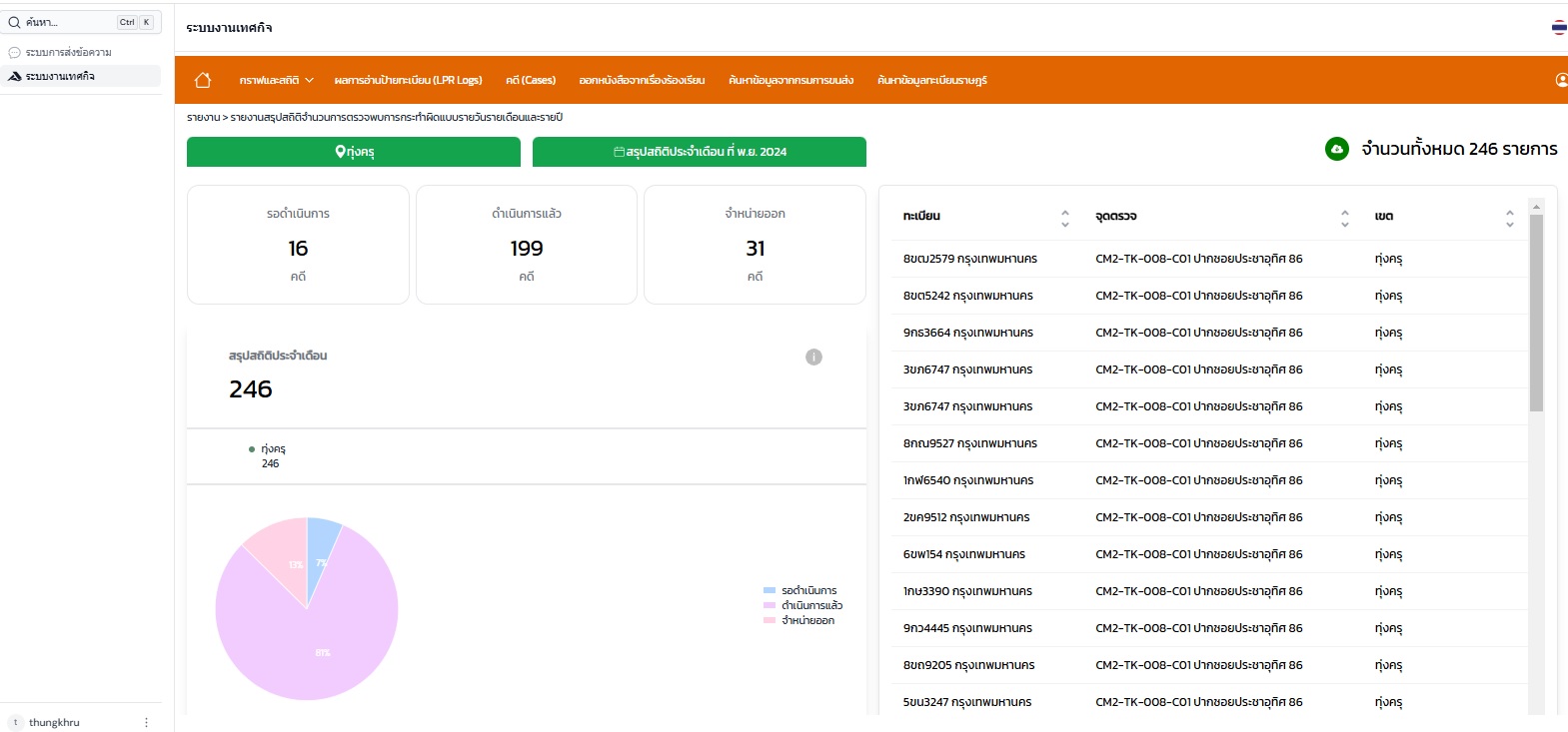 | 2 | รายงานผลการตรวจจับผู้กระทำความผิดจอดหรือขับขี่ รถยนต์ รถจักรยานยนต์บนทางเท้าด้วยกล้อง AI บริเวณปากซอยประชาอุทิศ 86 ประจำเดือนพฤศจิกายน 2567 | 8.00 | 01-11-2024 | 30-11-2024 |