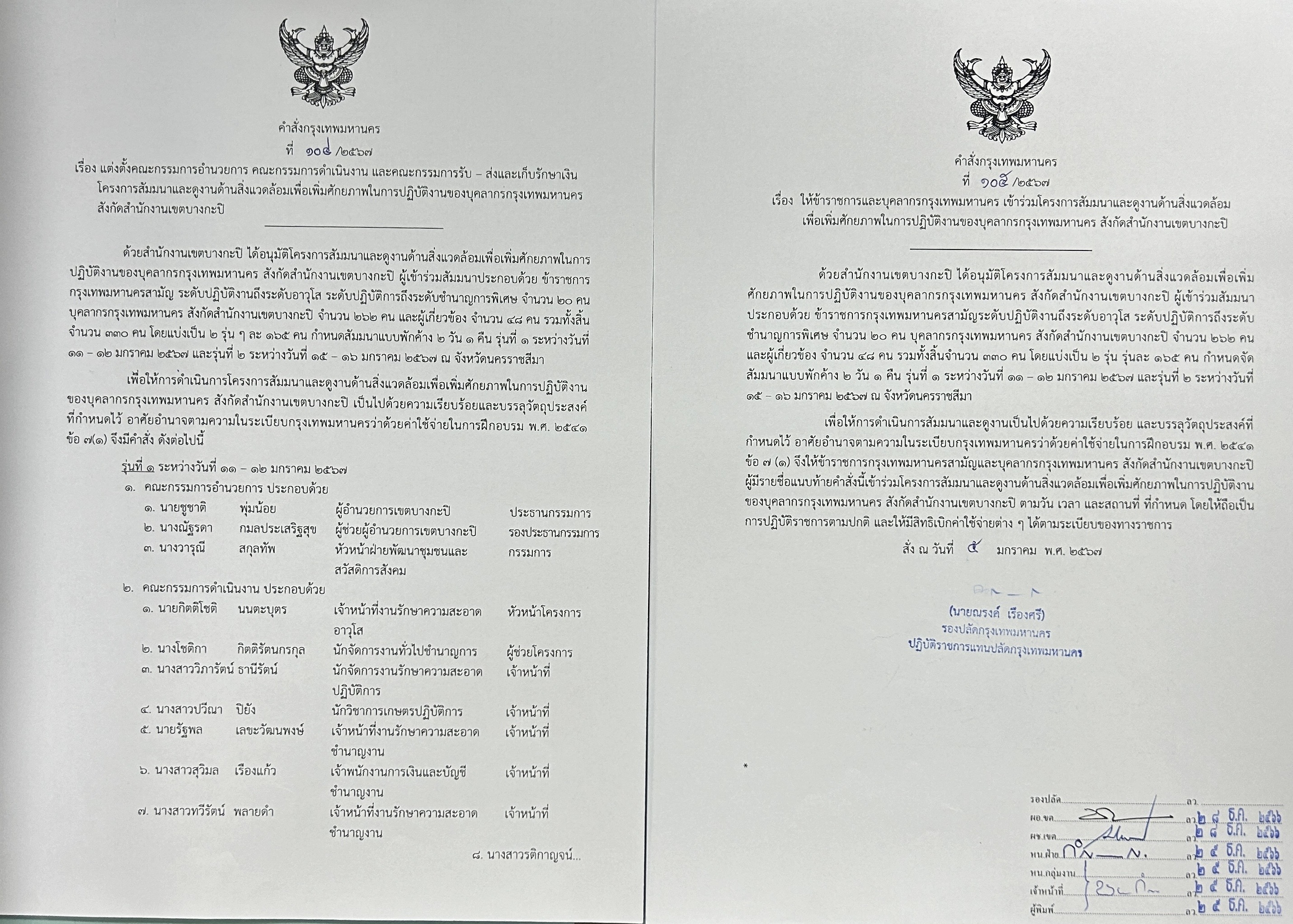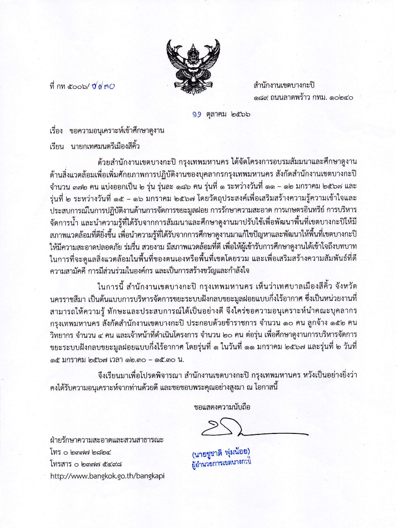 22-01-202440.00ข้าราชการและบุคลากรกรุงเทพมหานคร เข้าร่วมโครงการสัมมนาและดูงานด้านสิ่งแวดล้อมฯ ณ จังหวัดนครราชสีมา จำนวน 262 คน และผู้่เกี่ยวข้อง 48 คน รวมทั้งสิ้น 330 คน แบ่งเป็น 2 ่ร่่นละ 165 คน แบบพักค้าง 2 วัน 1 คืน ระหว่างวันที่ 11-12 มกราคม 2567 และรุ่นที่ 2 ระหว่า