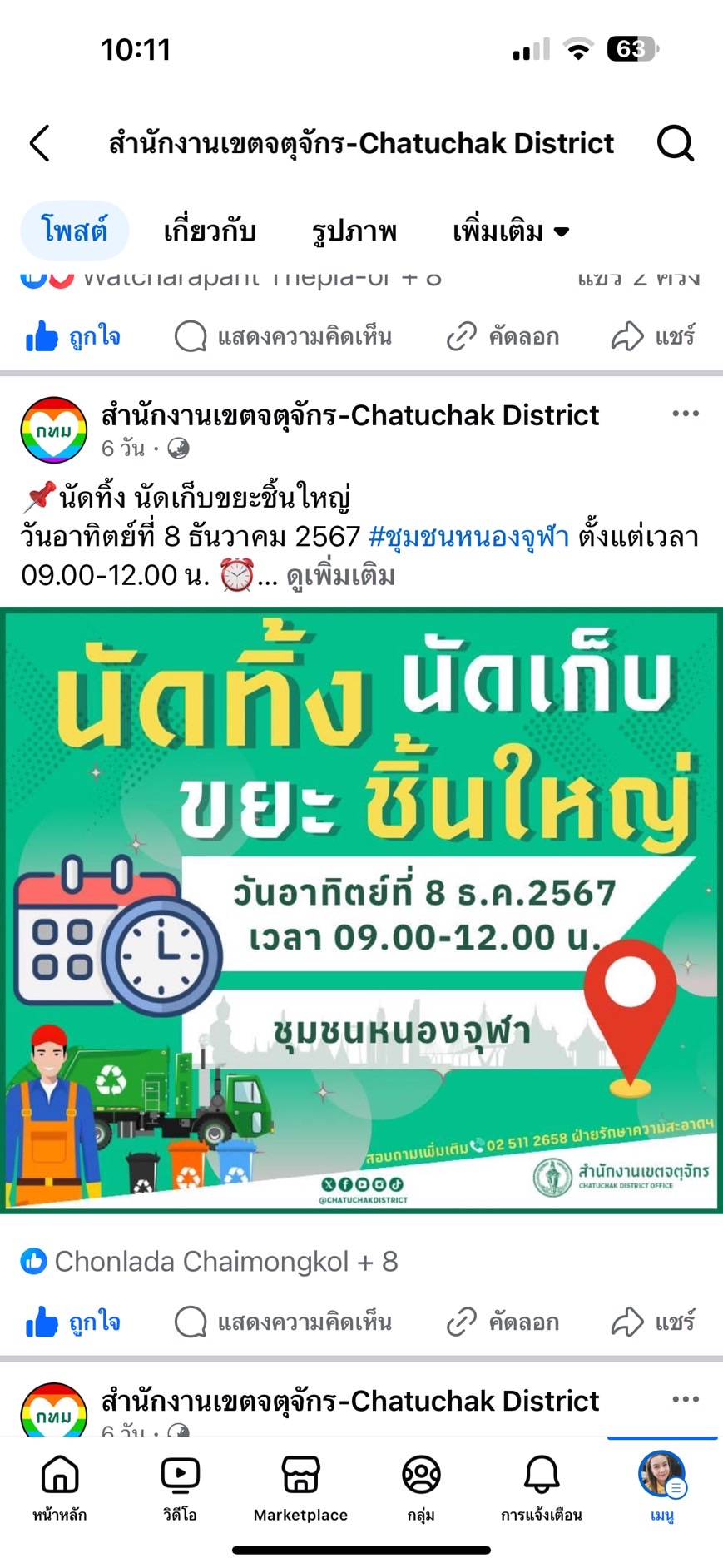 | 13-12-2024 | 1.00 |  | สำนักงานเขตจตุจักร ดำเนินการผลิตสื่อประชาสัมพันธ์ ประเภท อินโฟกราฟิกส์ นัดทิ้ง นัดเก็บ ขยะชิ้นใหญ่ ประจำสัปดาห์ เผยแพร่ผ่านแพลตฟอร์ม Facebook Fanpage สำนักงานเขตจตุจักร Chatuchak District เมื่อวันที่ 6 ธันวาคม 2567 | |