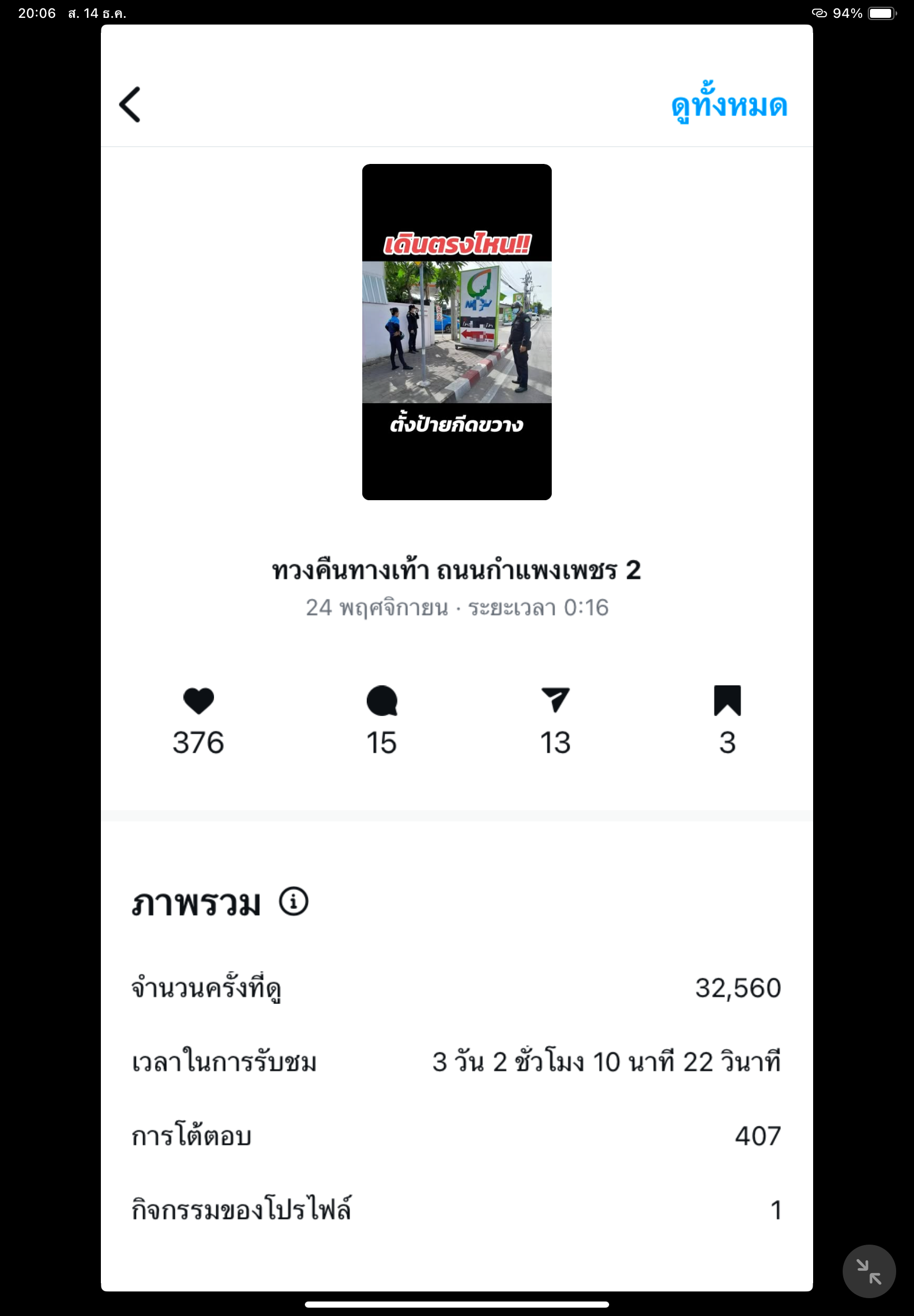 | 14-12-2024 | 1.00 |  | สำนักงานเขตจตุจักร ดำเนินการผลิตสื่อประชาสัมพันธ์ ประเภท คลิปวิดีโอสั้นทวงคืนทางเท้า ถนนกำแพงเพชร 2 เผยแพร่ผ่านแพลตฟอร์ม instagram เมื่อวันที่ 24 พฤศจิกายน 2567 | |