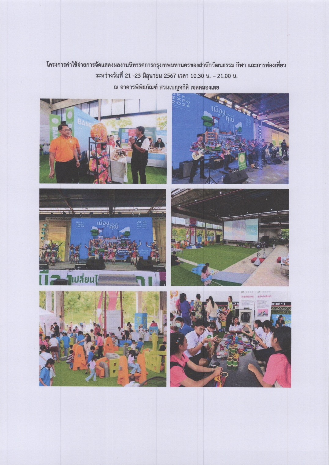 28-06-202420.00ดำเนินการการจัดกิจกรรมโครงการค่าใช้จ่ายในการจัดอสดงผลงานนิทรรศการกรุงเทพมหานคร ของ สวท. ระหว่างวันที่ 20 -23 มิถุนายน 2567
