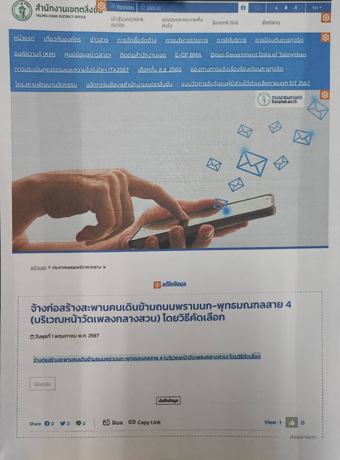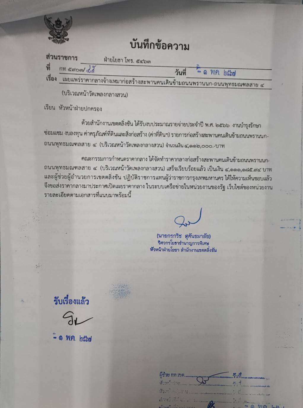 -โครงการก่อสร้างสะพานคนเดินข้ามถนนพรานนก-ถนนพุทธมณฑลสาย 4 (บริเวณหน้าวัดเพลงกลางสวน)4,112,000.00100.00สำนักงานเขตตลิ่งชันฝ่ายปกครอง