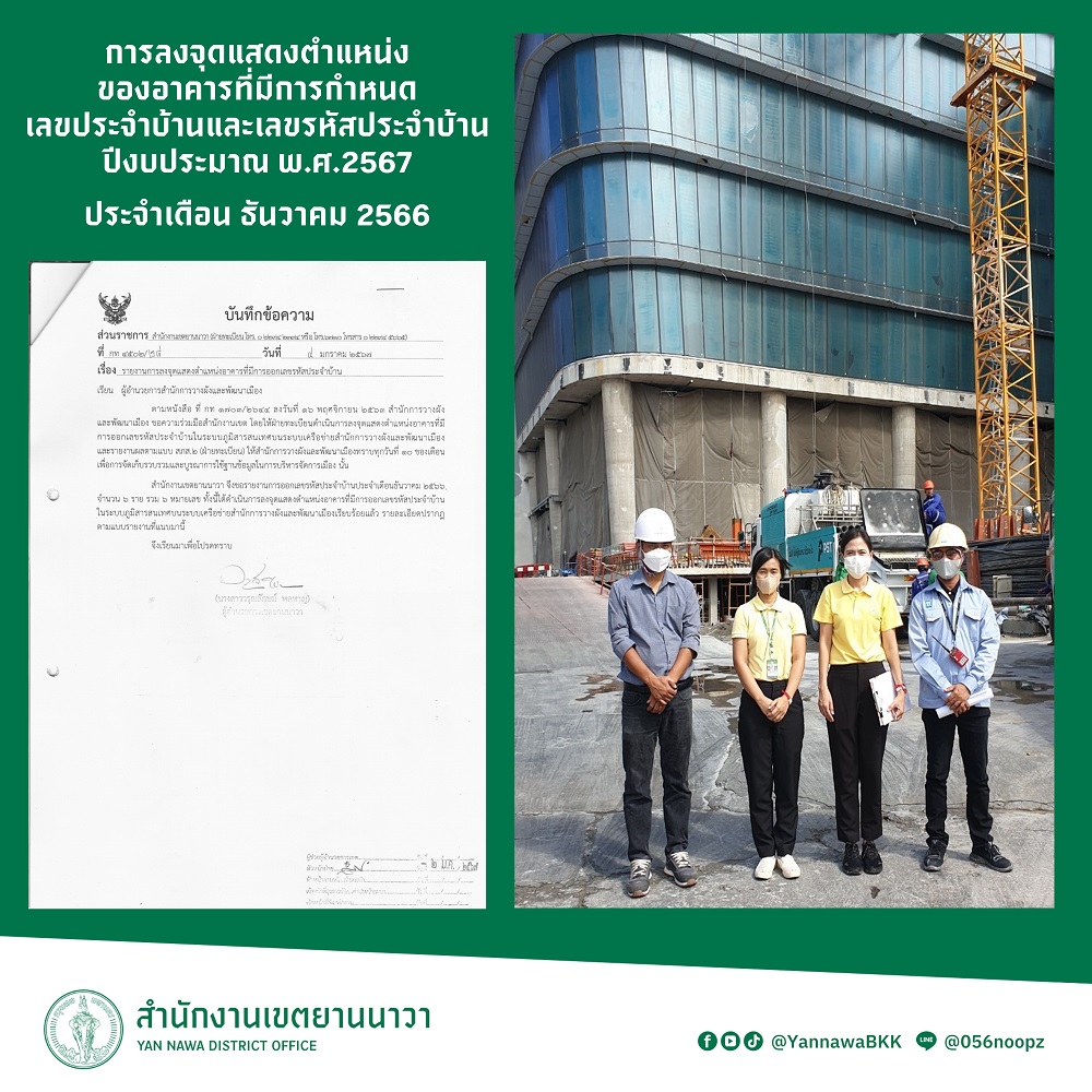 4 | ลงจุดแสดงตำแหน่งของอาคารที่มีการกำหนดเลขประจำบ้านและเลขรหัสประจำบ้าน ประจำเดือนธันวาคม 2566 | 7.00 | 01-12-2323 | 31-12-2323 |