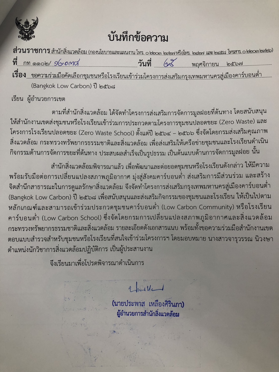 ![]() | 25-06-2025 | 0.00 | ![]() | เมื่อวันที่ 10 มิ.ย. 68 กรมการเปลี่ยนแปลงสภาพภูมิอากาศและสิ่งแวดล้อม ได้ประกาศรายชื่อชุมชนและโรงเรียนที่ผ่านการพิจารณารอบเอกสาร ในโครงการชุมชนและโรงเรียนคาร์บอนต่ำ (low carbon) ซึ่งกรุงเทพมหานคร มีชุมชนที่ผ่านเข้ารอบ จำนวน 1 ชุมชน ได้แก่ ชุมชนซอยอุ่นจิตร สำนักงานเขตบางเขน (กลุ่ม A ชุมชนในเขตเทศบาล และเขตปกครองรูปแบบพิเศษ) และมีโรงเรียนที่ผ่านเข้ารอบ จำนวน 2 โรงเรียน ได้แก่ 1. โรงเรียนวัดราษฎร์นิยมธรรม (พิบูลสงคราม) (กลุ่ม A โรงเรียนระดับประถมศึกษาและโรงเรียนขยายโอกาส) และ 2. โรงเรียนบดินทรเดชา (สิงห์ สิงหเสนี) 2 (กลุ่ม B โรงเรียนระดับมัธยมศึกษา) | |