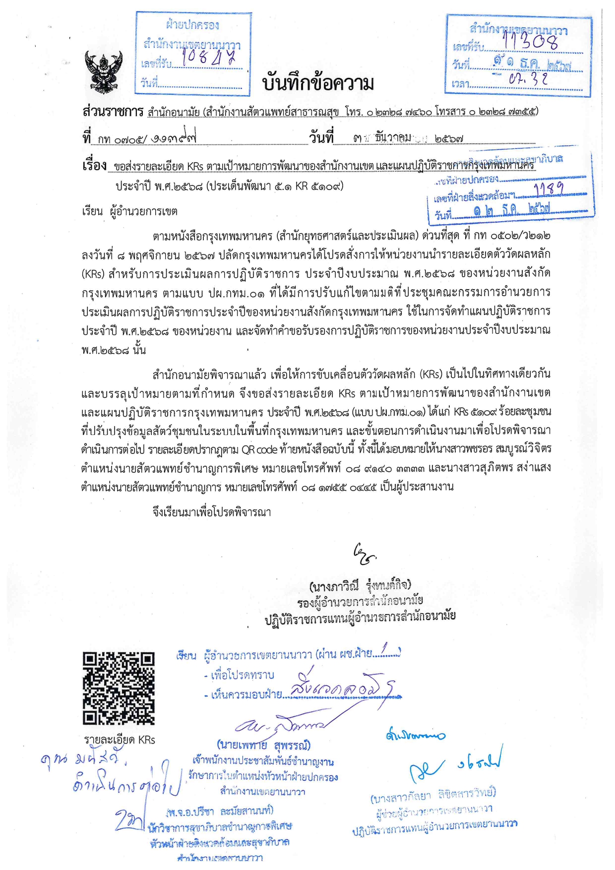 13-12-20240.00ได้รับรายละเอียด KRs ตามเป้าหมายการพัฒนาของสำนักงานเขต และแผนปฏิบัติราชการกรุงเทพมหานคร ประจำปี พ.ศ. 2568 (ประเด็นพัฒนา 5.1 KR 5109) จากสำนักอนามัย และได้ดำเนินการปรับปรุงขั้นตอนการดำเนินงานในระบบ Policy Tracking เรียบร้อบแล้ว