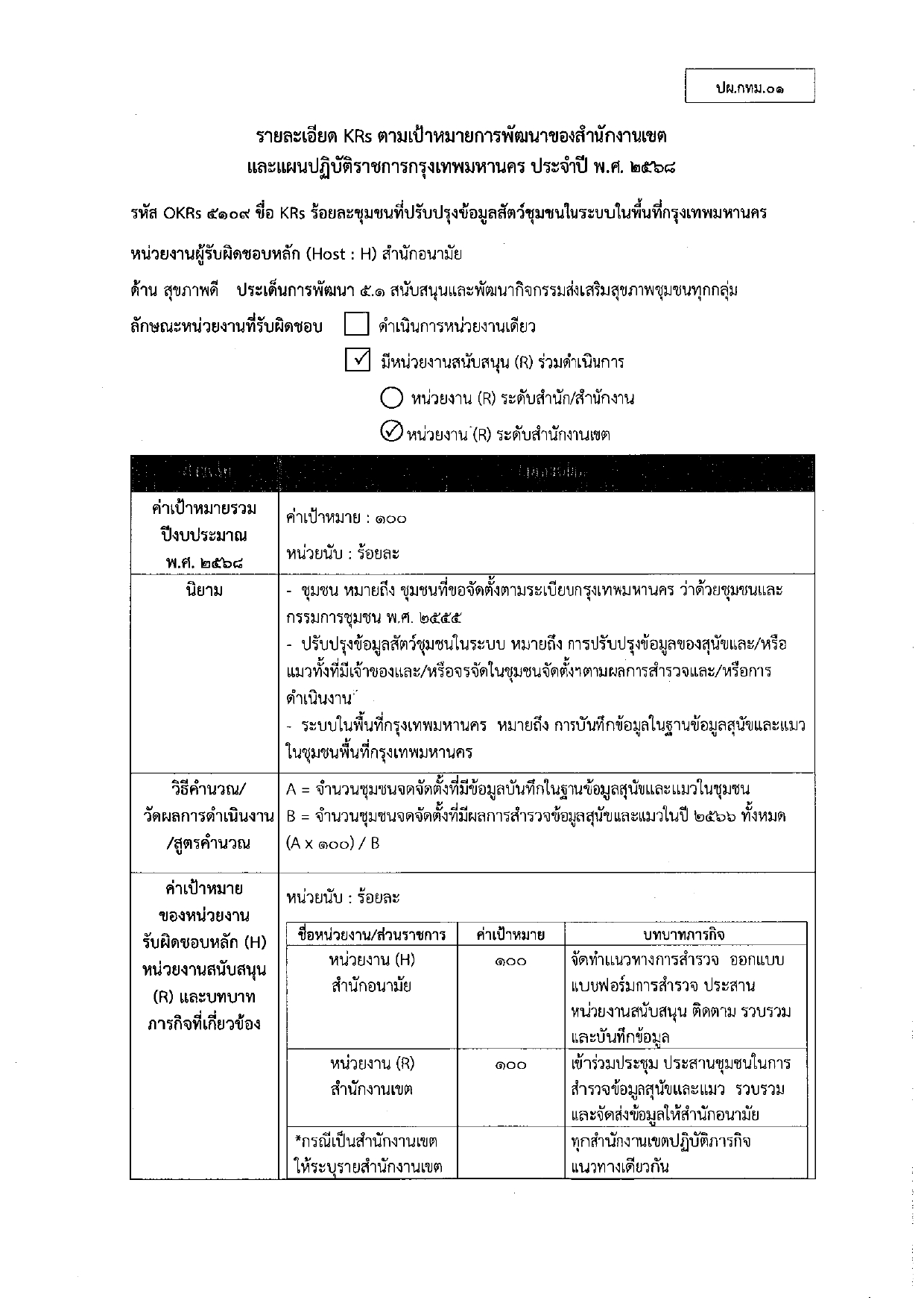 KRs/KPI ที่เกี่ยวข้อง