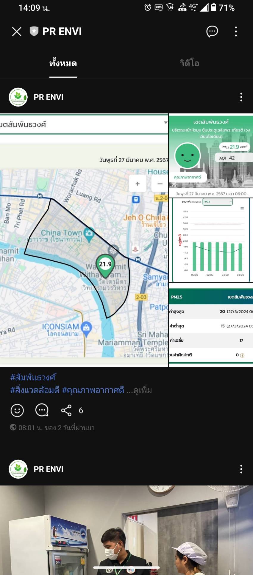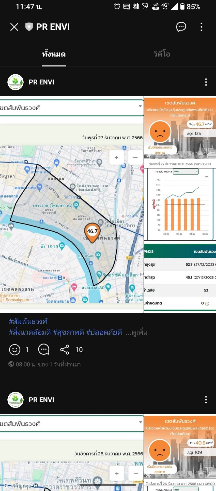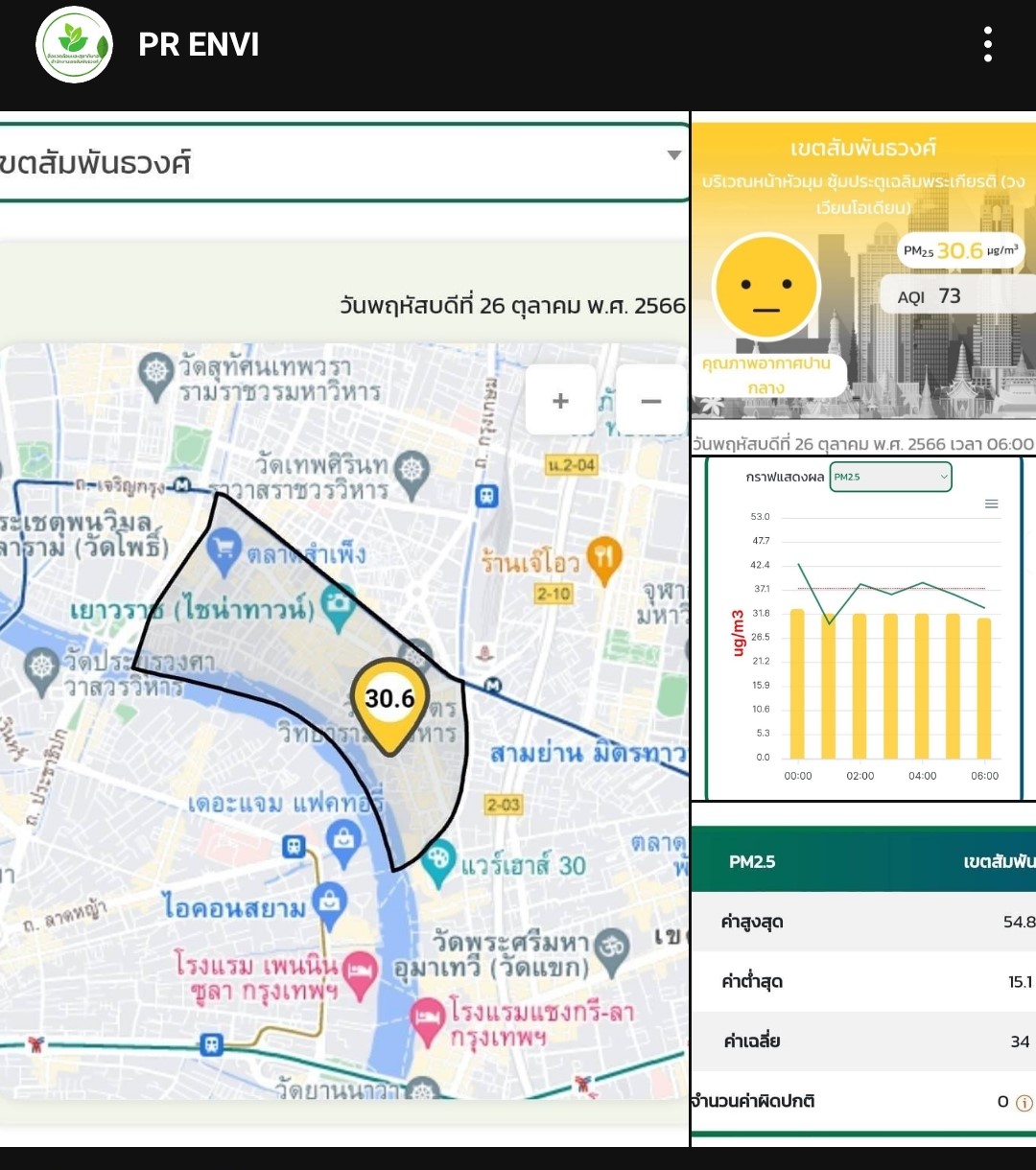 1ติดตามตรวจสอบข้อมูลคุณภาพอากาศโดยสถานีตรวจวัดคุณภาพอากาศที่ตั้งในเขตสัมพันธวงศ์ รายงานและแจ้งเตือนสถานการณ์คุณภาพให้ประชาชนทราบทุกวันผ่านช่องทางการรายงาน : เว็บไซต์ แอปพลิเคชันไลน์ โดยมีความถี่ของการรายงานแจ้งเตือนวันละ 1 ครั้ง เวลา 07.00 น.100.0001-10-202330-09-2024
