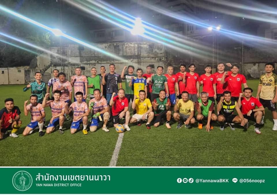 | 24-06-2024 | 0.00 |  | ชมรมฟุตบอลเพื่อสุขภาพ ผู้บริหารและเจ้าหน้าที่สำนักงานเขตยานนาวา ร่วมเล่นกีฬาฟุตซอล เมื่อวันที่ 15 พ.ค. 67 ณ สนามฟุตบอล ERA Soccer (ยานนาวา) ริมถนนนนทรี เขตยานนาวา เพื่อออกกำลังกายและผ่อนคลายความเครียด เสริมสร้างคุณภาพชีวิตที่ดี ทุกวันอังคารหรือพุธ สัปดาห์ละ 1 ครั้ง | |