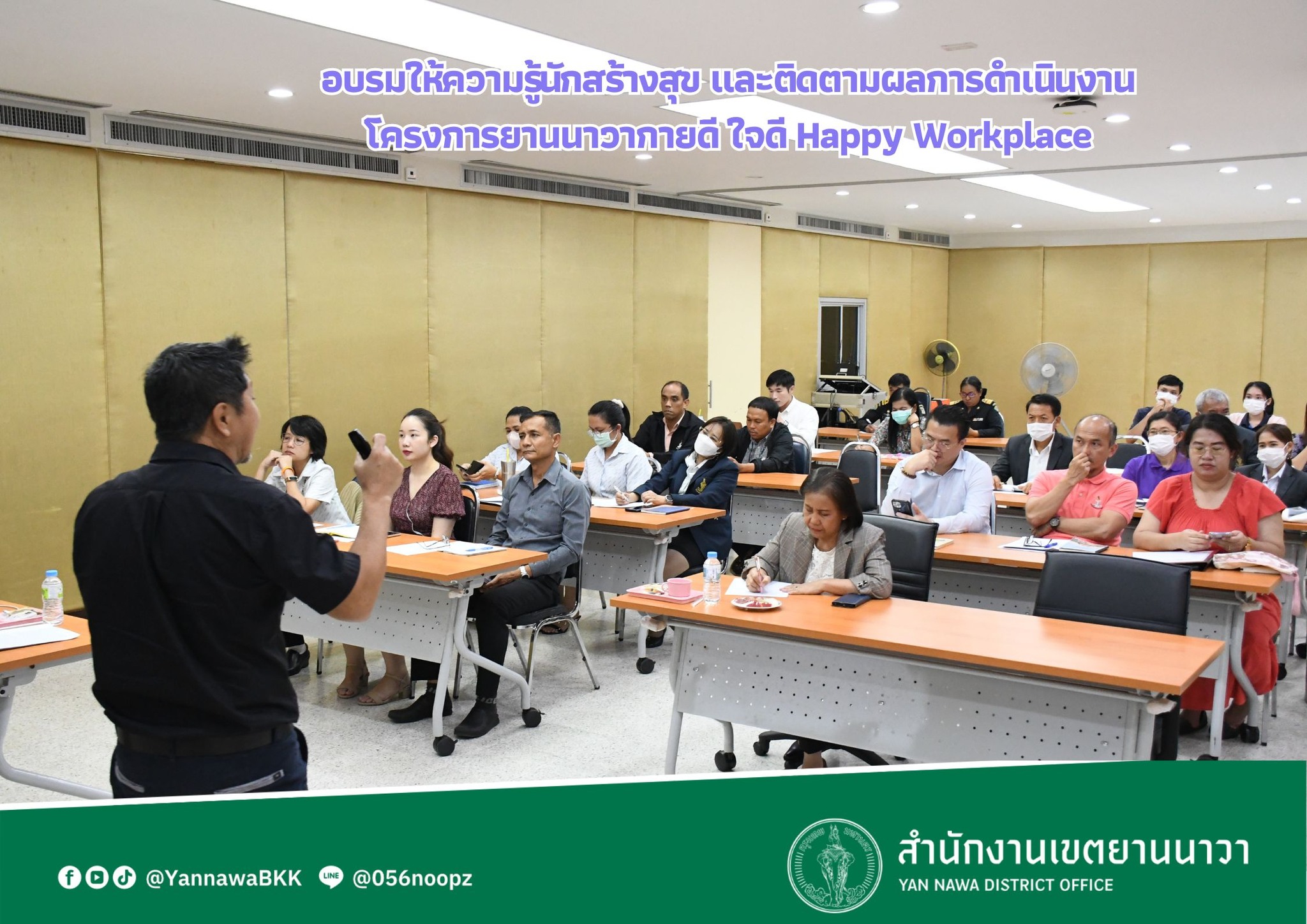 | 24-06-2024 | 0.00 |  | กิจกรรมอบรมให้ความรู้นักสร้างสุข โดย อ.ดร.ศิริเชษฐ์ สังขะมาน จากสถาบันวิจัยสังคม จุฬาลงกรณ์มหาวิทยาลัย ที่ปรึกษาโครงการยานนาวากายดี ใจดี Happy Workplace ณ ห้องประชุม ชั้น 1 สำนักงานเขตยานนาวา พร้อมติดตามผลการดำเนินงานกิจกรรมตามโครงการ ทั้ง 17 กิจกรรม | |
