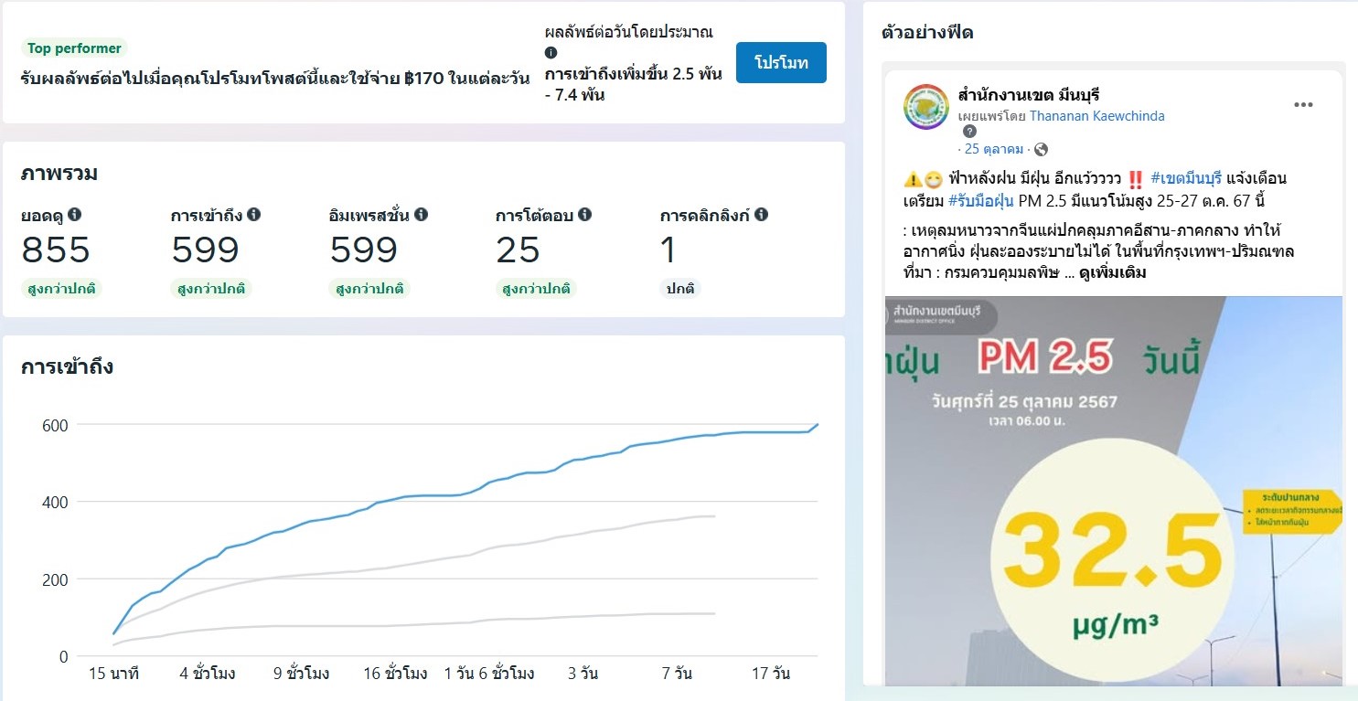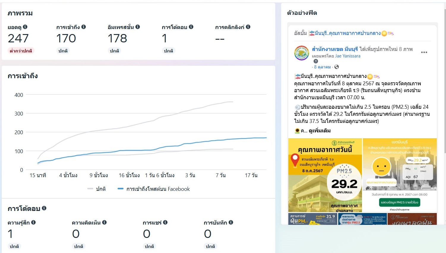1 | กิจกรรมการเผยแพร่สื่อประชาสัมพันธ์และการเข้าถึงสื่อประชาสัมพันธ์ที่เผยแพร่(Engagement) | 20.00 | 01-10-2024 | 31-10-2024 |