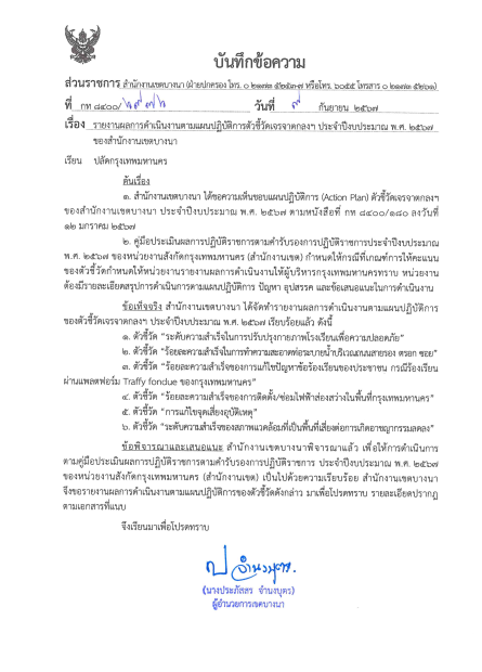ลำดับ | วันที่รายงาน | ผลการดำเนินงาน |