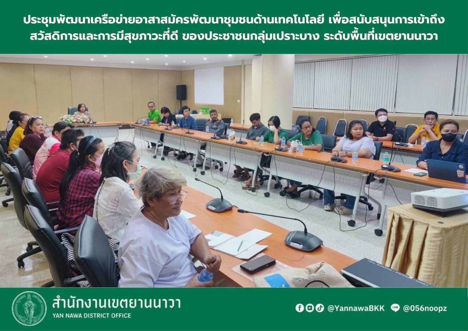 | 29-04-2024 | 0.00 |  | ประชุมพัฒนาเครือข่ายอาสาสมัครด้านเทคโนโลยี เพื่อสนับสนุนการเข้าถึงสวัสดิการของประชาชนกลุ่มเปราะบาง ระดับพื้นที่เขตยานนาวาเมื่อวันที่ 17 มีนาคม 2567 และอาสาสมัครเทคโนโลยีประจำชุมชน เจ้าหน้าที่ฝ่ายพัฒนาชุมชนฯ (กรณีชุมชนที่ไม่มีอาสาสมัครด้านเทคโนโลยี) ได้ลงพื้นที่เก็บข้อมูลกลุ่มเปราะบางในชุมชน และบันทึกในระบบเรียบร้อยแล้วจำนวน 16 ชุมชน เมื่อวันที่ 24 เมษายน 2567 | |