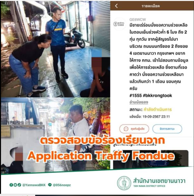 | 22-09-2024 | 0.00 |  | พัฒนาชุมชนฯยานนาวา ตรวจสอบข้อร้องเรียนผ่าน Application Traffy Fondue (ด้านบุคคลไร้บ้าน/เร่ร่อน)