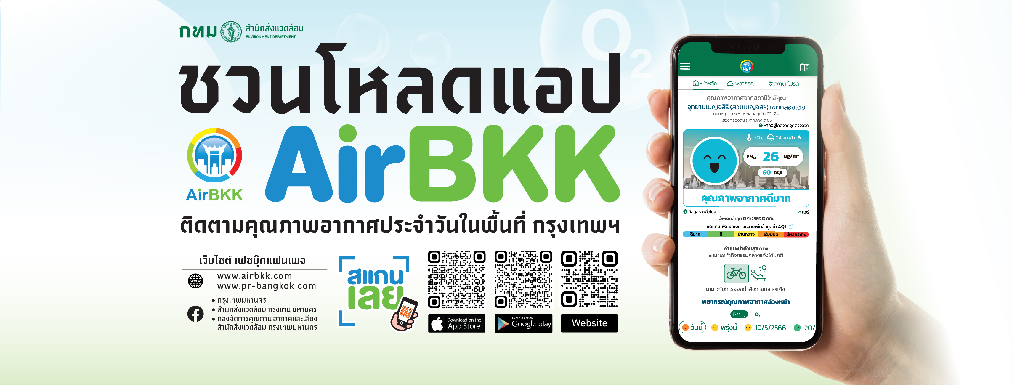 | 24-09-2024 | 0.00 |  | ประชาสัมพันธ์แจ้งเตือนผ่านทางช่องทางออนไลน์ - FB: กองจัดการคุณภาพอากาศและเสียง -FB สำนักสิ่งแวดล้อม- FB: กรุงเทพมหานคร - LINE ALERT - LINE OA @airbangkok - App: AirBkk | |