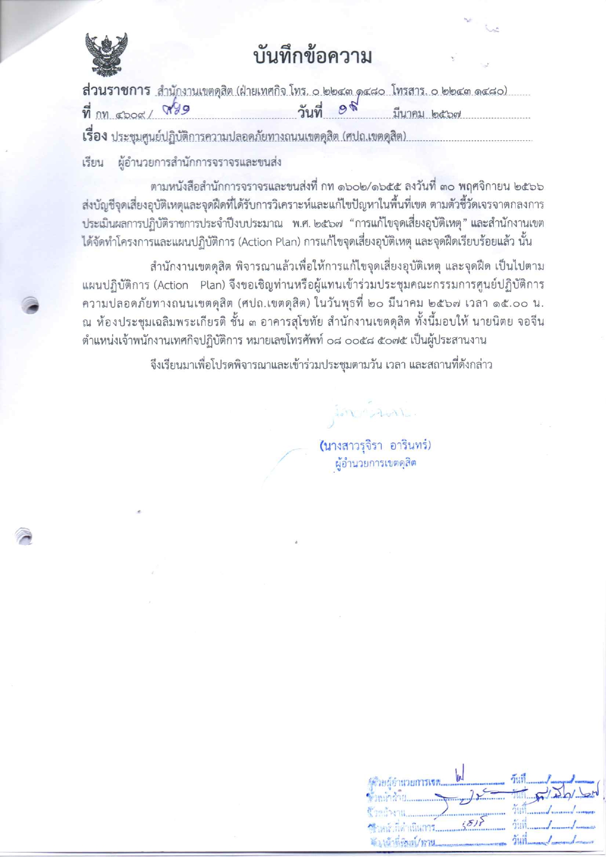 22-08-20240.00จัดประชุมคณะกรรมการศูนย์ปฏิบัติการความปลอดภัยทางถนนเขตดุสิต (ศปถ.เขต) เมื่อวันที่ 20 มีนาคม 2567