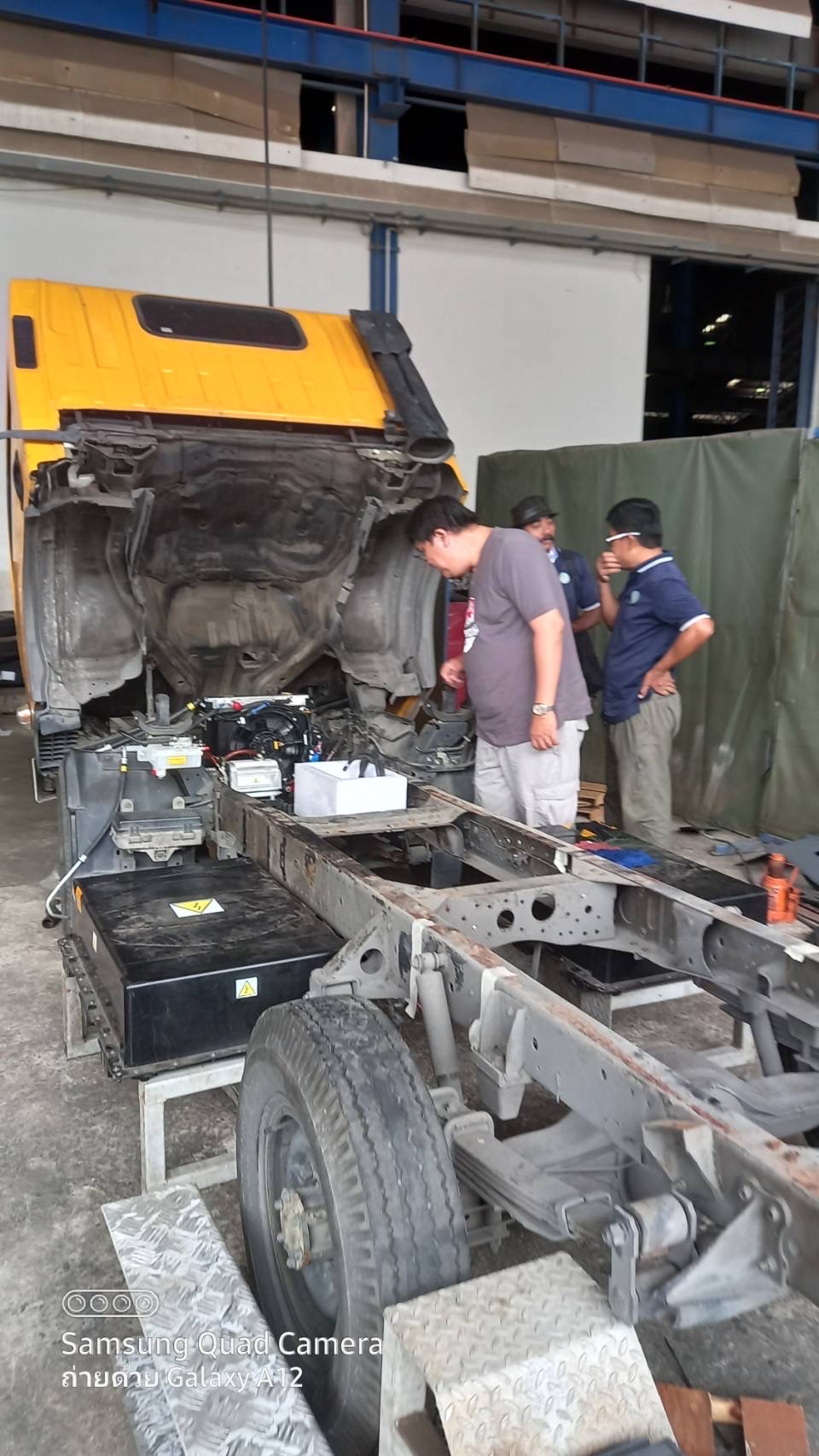 23-07-20240.00ติดตั้งอุปกรณ์ชุดขับเคลื่อน (Drivetrain) และแบตเตอรรี่เข้ากับตัวรถแล้วเสร็จ อยู่ระหว่างติดตั้งอุแกรณ์ประกอบ (คอมเพรสเซอร์แอร์ไฟฟ้า ปั๊มลมเบรก พวงมาลัยพาวเวอร์ไฟฟ้า)