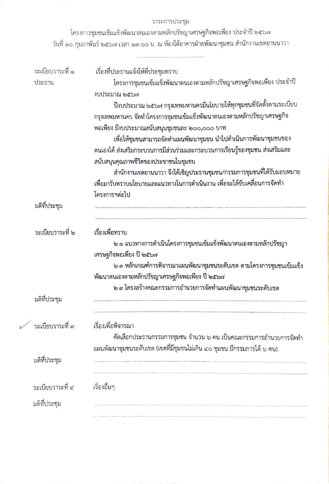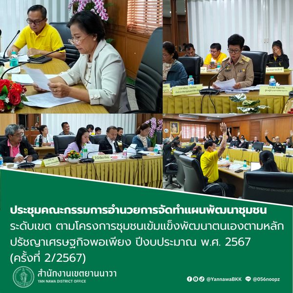 ![]() | - | กิจกรรมอบรมให้ความรู้เรื่องการดำเนินโครงการชุมชนเข้มแข็งพัฒนาตนเองตามหลักปรัชญาเศรษฐกิจพอเพียง | 0.00 | 100.00 | สำนักงานเขตยานนาวา | ฝ่ายพัฒนาชุมชนและสวัสดิการสังคม |