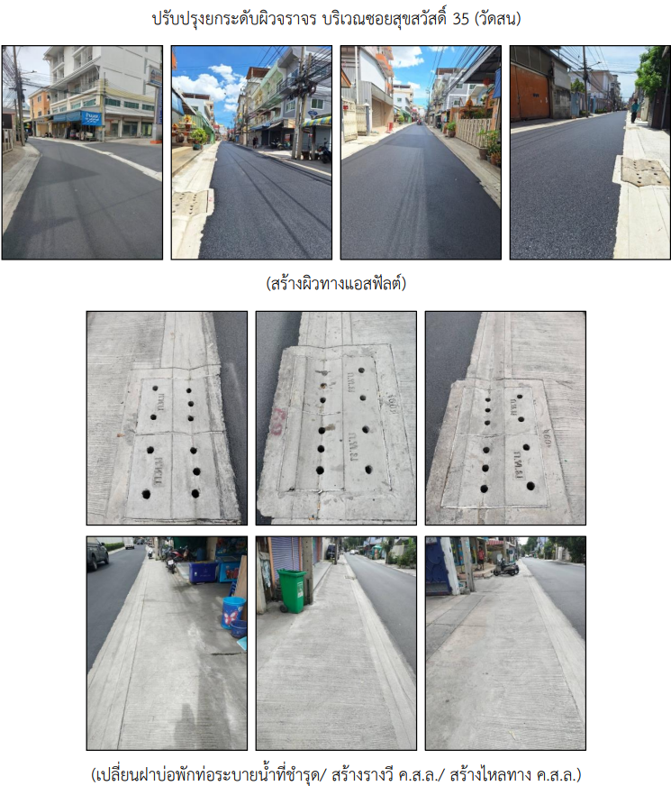 ![]() | 31-08-2024 | 1.00 | ![]() | ปรับปรุงยกระดับผิวจราจร บริเวณซอยสุขสวัสดิ์ 35 (วัดสน) แล้วเสร็จ โดยมีการสร้างผิวทางแอสฟัลต์ เปลี่ยนฝาบ่อพักท่อระบายน้ำที่ชำรุด สร้างรางวี ค.ส.ล. และสร้างไหลทาง ค.ส.ล. | |