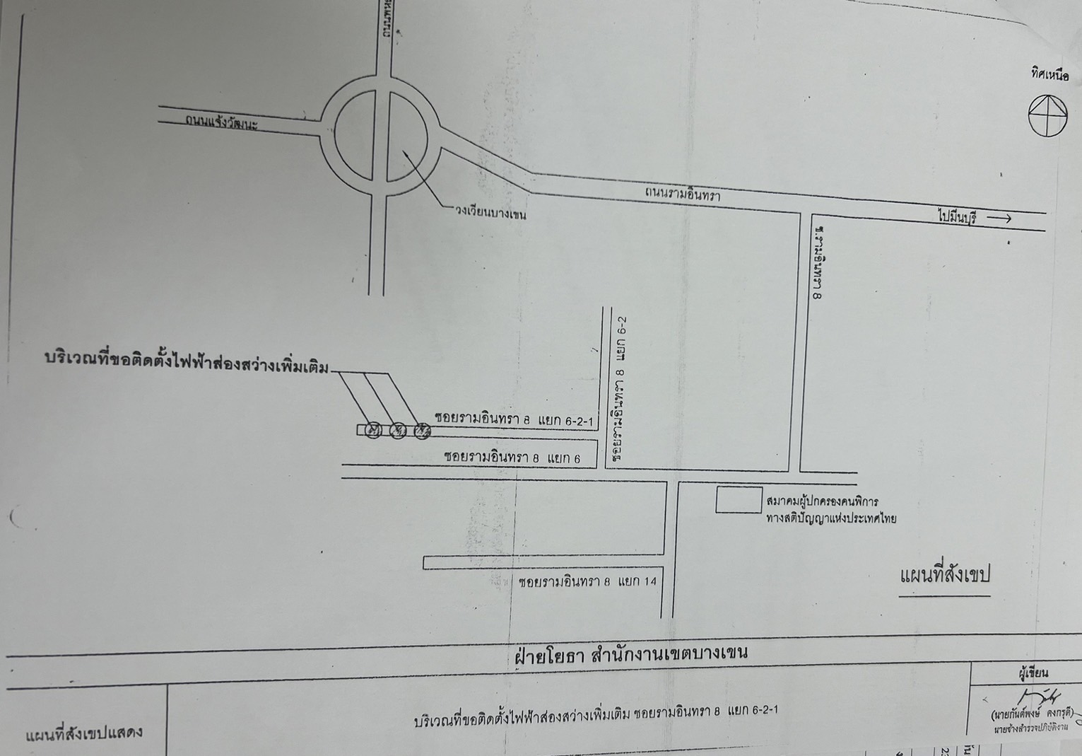 07-03-20243.00มีการดำเนินการติดตั้งไฟฟ้าส่องสว่างบริเวณซอยรามอินทราอินทรา 8 แยก 6-2-1 จำนวน 3 ดวง