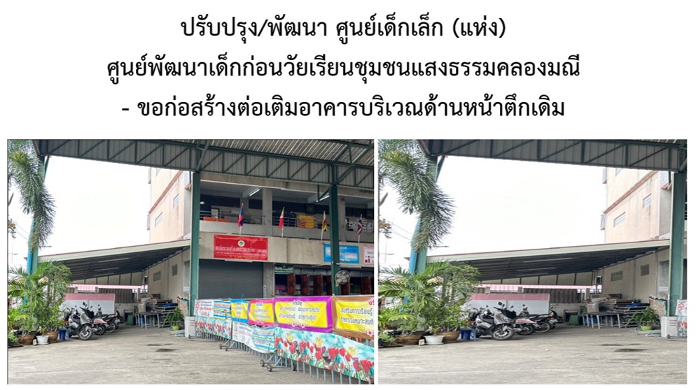7ปรับปรุงศูนย์พัฒนาเด็กก่อนวัยเรียน ชุมชนแสงธรรมคลองมณี25.0001-10-202330-09-2024