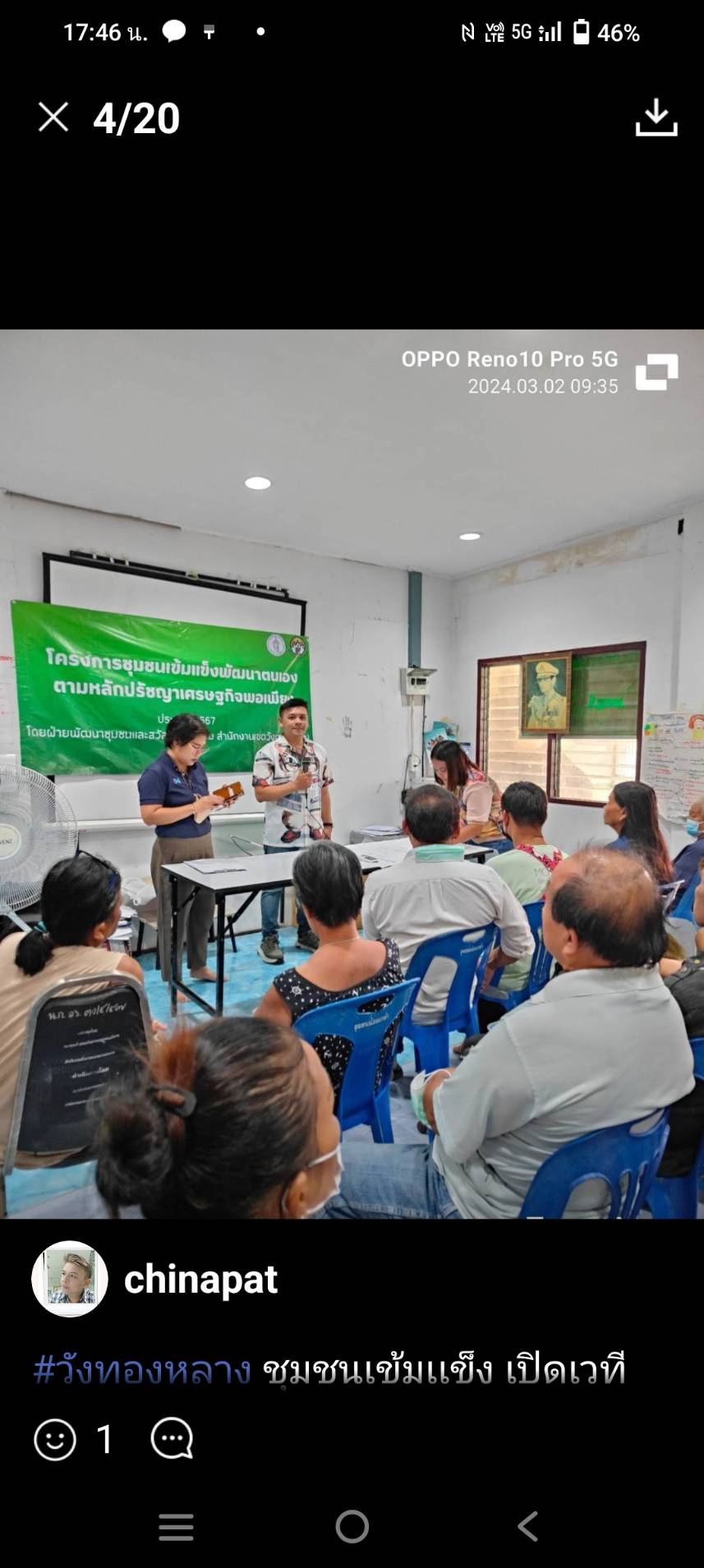 ![]() | 05-03-2024 | 0.00 | ![]() | วันที่ 4 มีนาคม 2567 ดำเนินการเปิดเวทีชาวบ้าน ตามโครงการชุมชนเข้มแข็งพัฒนาตนเองตามหลักปรัชญาเศรษฐกิจพอเพียง ณ ชุมชนทรัพยืสินใหม่ มีวัตถุประสงค์เพื่อรับฟังปัญหา ความต้องการของชุมชน ชี้แจงหลักเกณฑ์ แนวทางการดำเนินงานของโครงการ จัดตั้งคณะทำงานระดับชุมชน | |