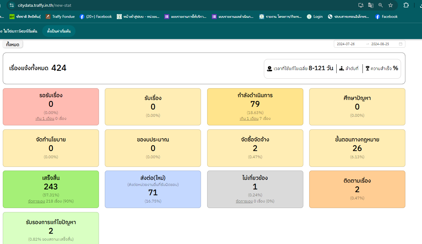 ![]() | - | การแก้ไขปัญหาเรื่องร้องเรียนของประชาชนผ่านระบบ Traffy Fondue (ร้อยละ) | 0.00 | 100.00 | สำนักงานเขตดอนเมือง | ฝ่ายปกครอง |