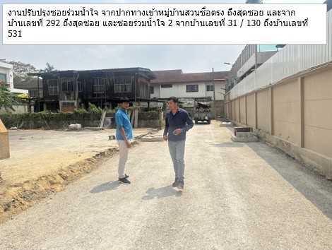 รายละเอียดโครงการ : (4) ปรับปรุงซอยร่วมน้ำใจ จากปากทางเข้าหมู่บ้านสวน ซื่อตรง ถึงสุดซอย และจากบ้านเลขที่ 292 ถึงสุดซอยและซอยร่วมน้ำใจ 2 จากบ้านเลขที่ 31/130 ถึงบ้านเลขที่ 531 (ID: 5258)