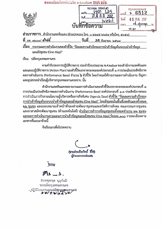 25-09-20240.00สำนักงานเขตดินแดงสรุปผลการดำเนินงานและรายงานผู้บริหารกรุงเทพมหานครทราบแล้ว