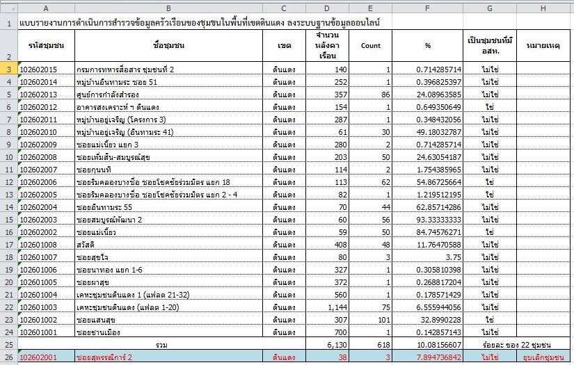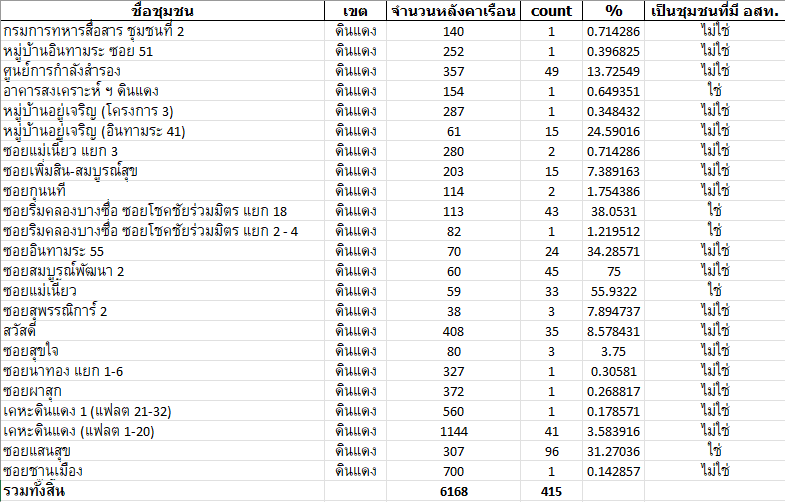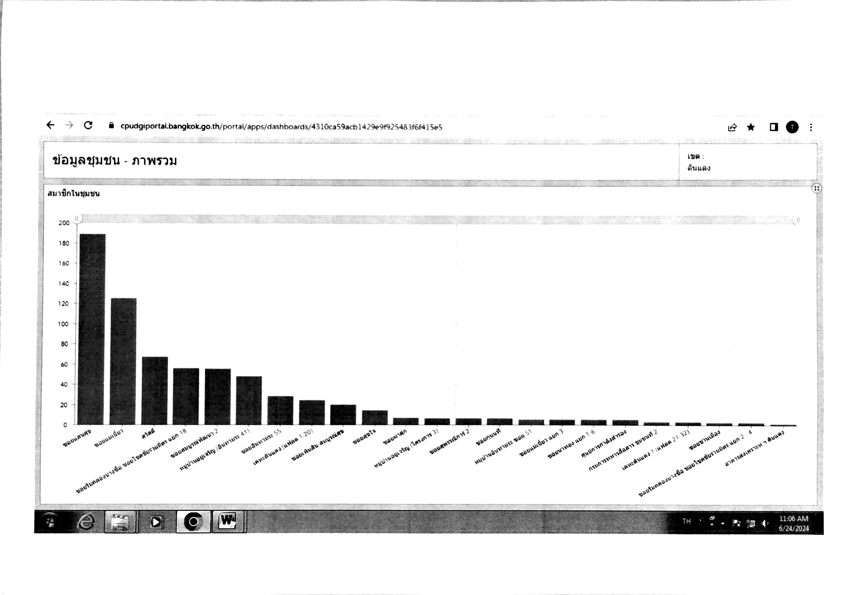 10-06-202410.00อาสาสมัครชุมชนฯ ลงข้อมูลชุมชนรวมทั้งหมด 13 ชุมชน คิดเป็นร้อยละ 59