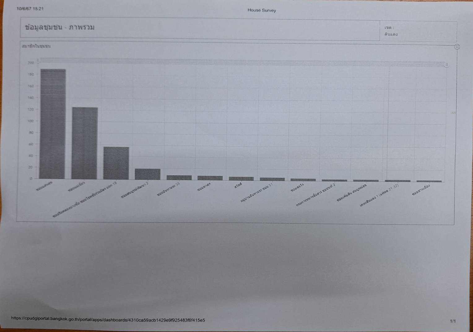 21-09-20240.00อาสาสมัครพัฒนาชุมชน ดำเนินการสำรวจข้อมูลชุมชนและนำข้อมูลเข้าสู่ระบบ รวมจำนวนทั้งสิ้น 618 ครัวเรือน / 23 ชุมชน รายงานผู้บริหารกทม.ทราบแล้ว