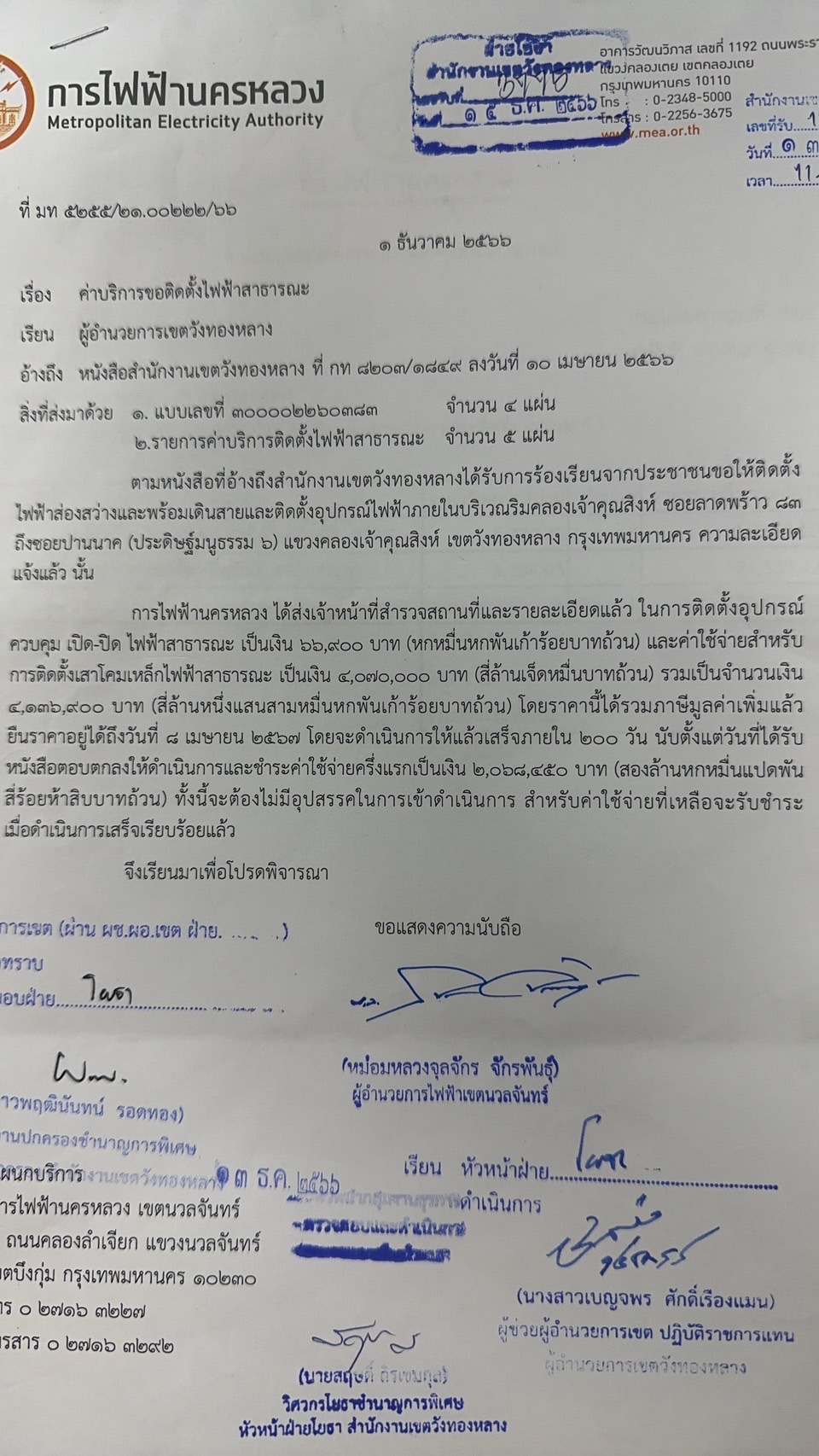 18-03-202410.00ไฟฟ้าดำเนินการติดตั้งไฟฟ้าบริเวณริมคลองลาดพร้าว