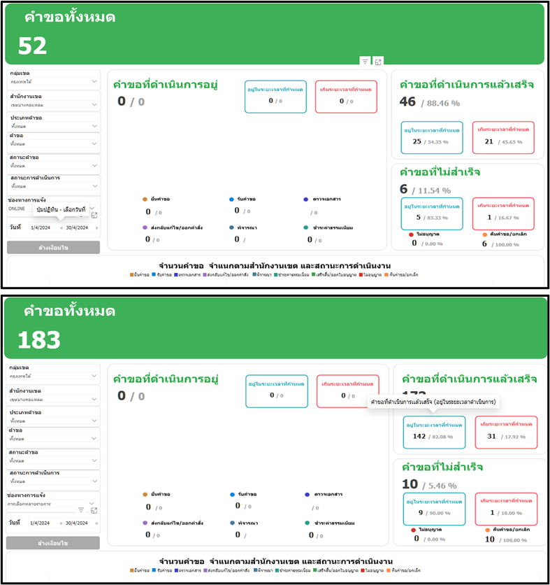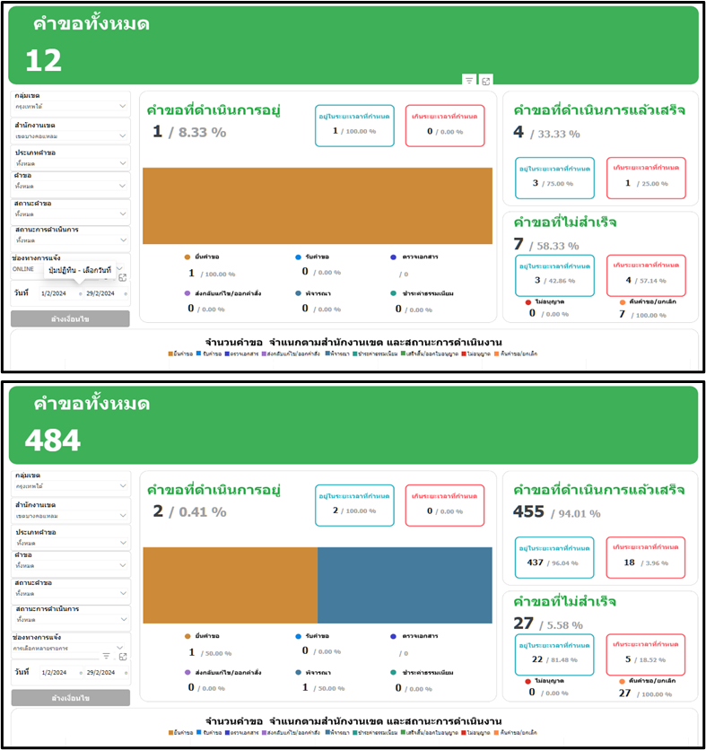 25-04-202428.29เดือนเมษายน 2567 มีประชาชนยื่นคำขอผ่านทาง online จำนวน 43 ราย คำขอทั้งหมด (online และ onsite) จำนวน 152 ราย