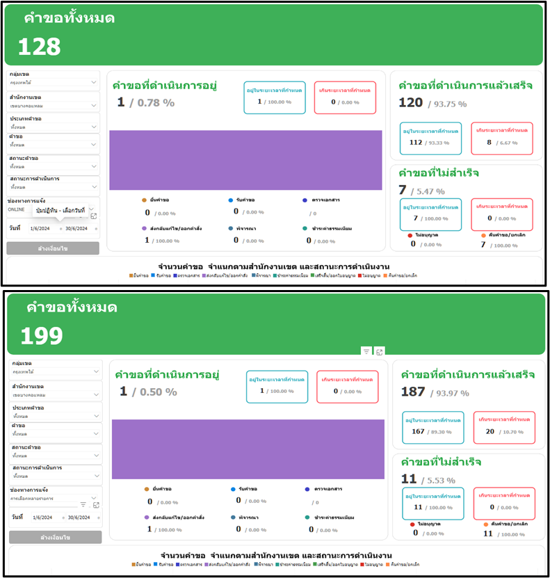 25-06-202464.32เดือนมิถุนายน 2567 มีประชาชนยื่นคำขอผ่านทาง online จำนวน 128 ราย คำขอทั้งหมด (online และ onsite) จำนวน 199 ราย